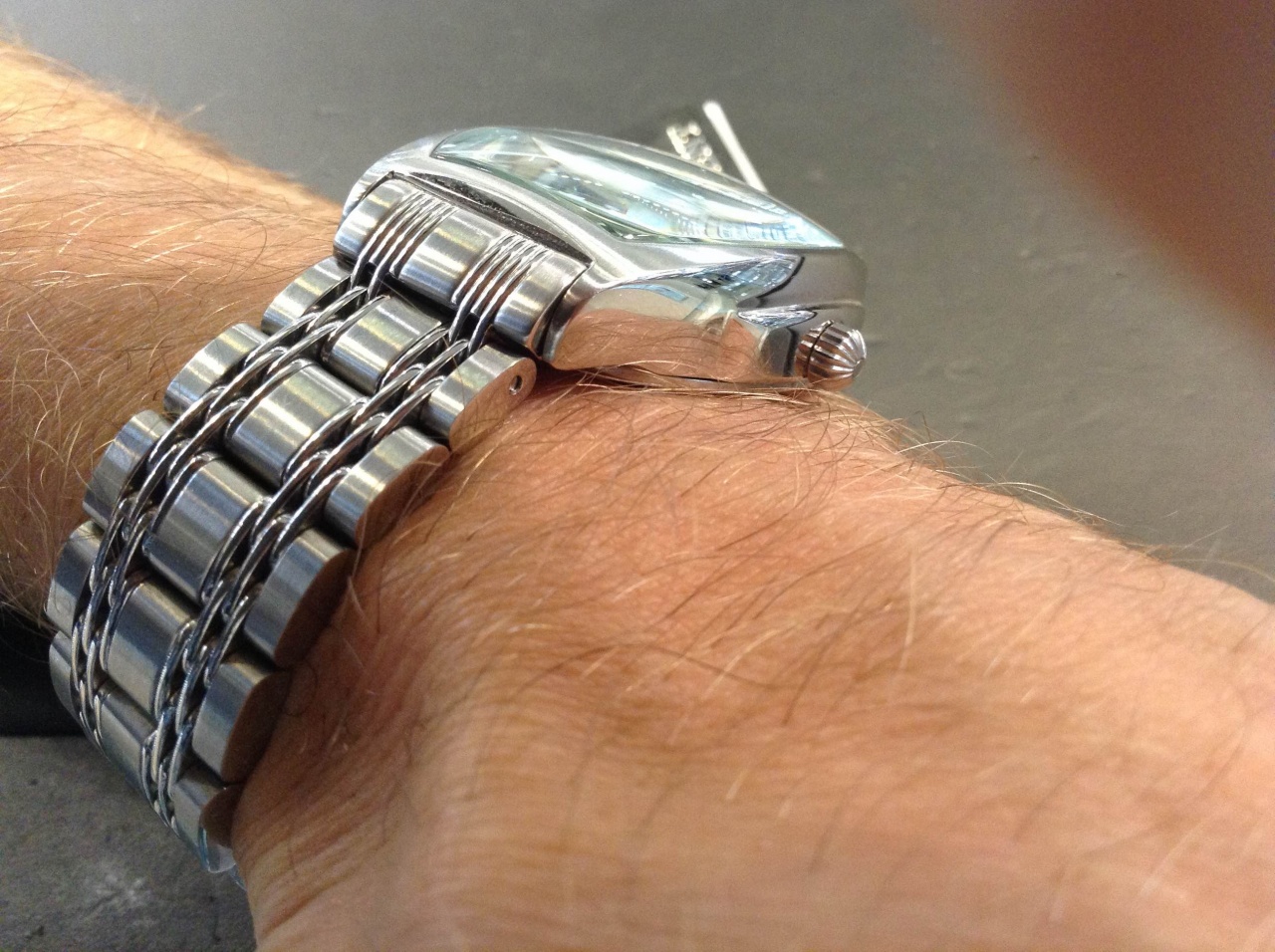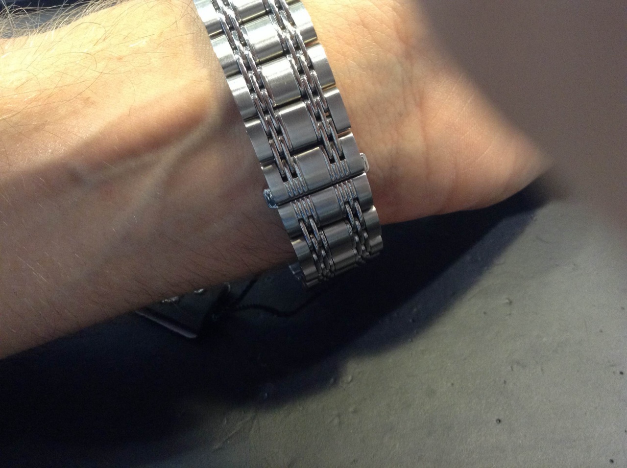 Вообще браслет внушает уважение. Выглядит очень стильно. Не часто встретишь такой браслет. Я бы с ходу оценил бы его тысяч так на двадцать. Эти тонкие глянцевые проволочки, соединяющие матовые (сатинированные) звенья браслета смотрятся очень эффектно. Оригинально сделано!!! Нет слов!!!