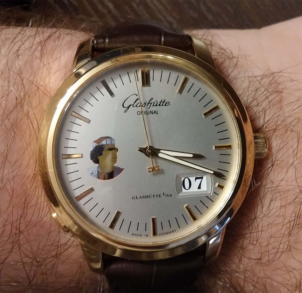Так что часы я взял, цена очень хорошая была. Но так как Каддафи совершенно не поддерживаю (да и не солидно на таких часах «левые картинки» иметь) решил от портрета диктатора избавиться.