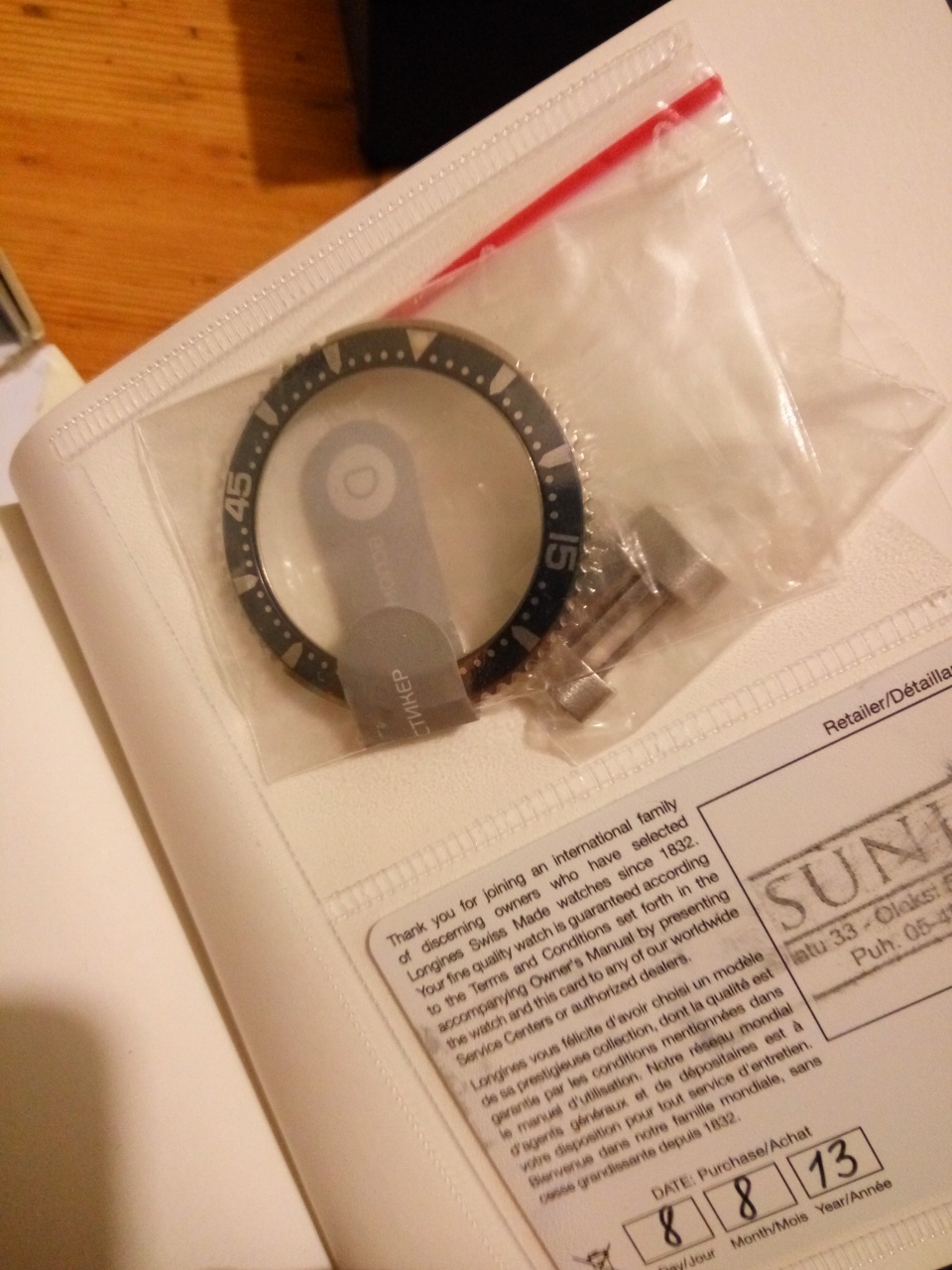 Безель оригинал от Longines (доставили по заказу цена-100 евро), был заменен с новья в сервисе.