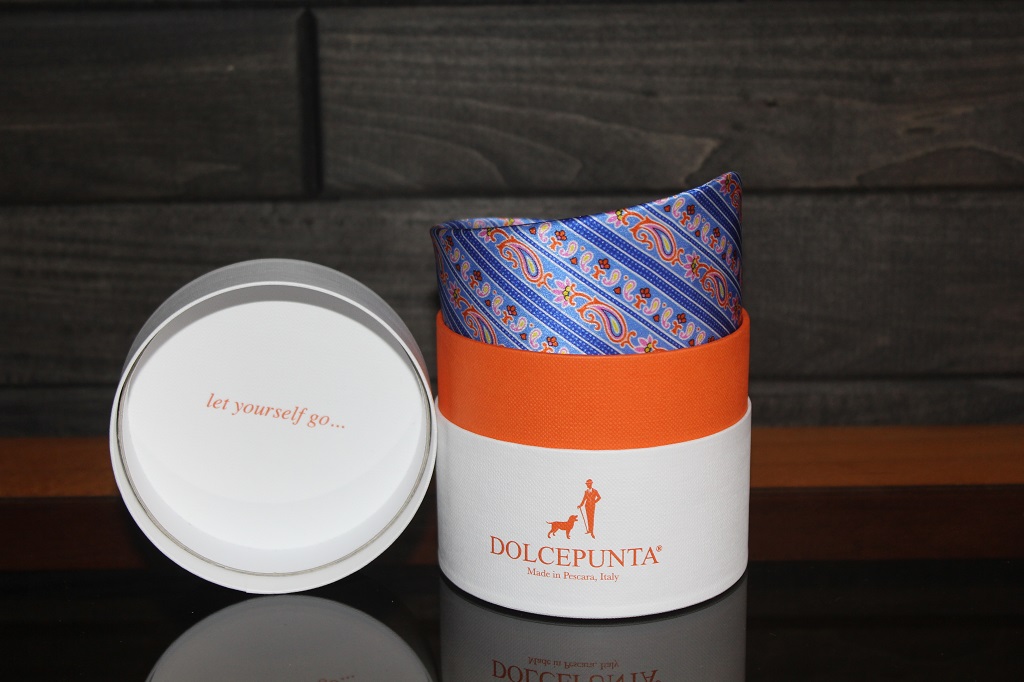 Элегантный галстук ручной работы от легендарного галстучного ателье "Dolcepunta", изготовлен из 100% шёлка высочайшего качества выделки. Галстук выполнен по запатентованной технологии "Softpoint" (широкий и узкий концы галстука имеют "каплевидное" скругление), обеспечивающей необходимую плотность и пластичность галстука. Широкий и узкий концы галстука укреплены стежками, пришитыми вручную. Логотип марки "Dolcepunta" с изображением Джентльмена и собаки пришит вручную.