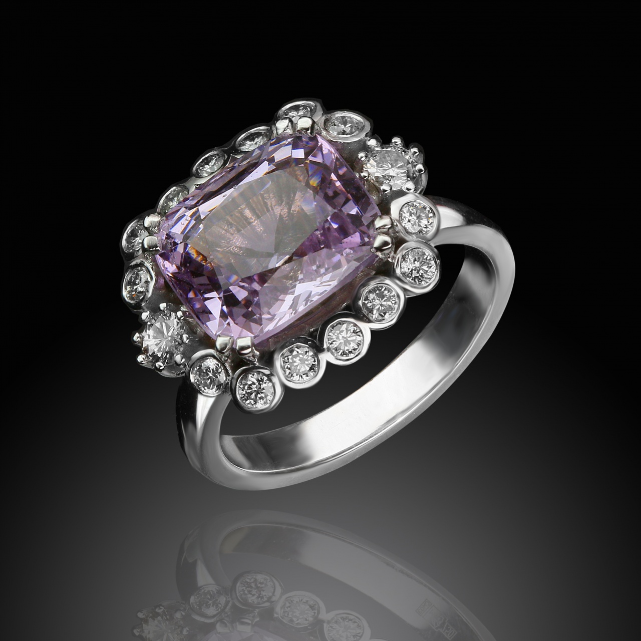 Продается красивейшее кольцо из белого золота с розовой шпинелью 5,19 карат и бриллиантами 0,6 карат (сертификат GIA).