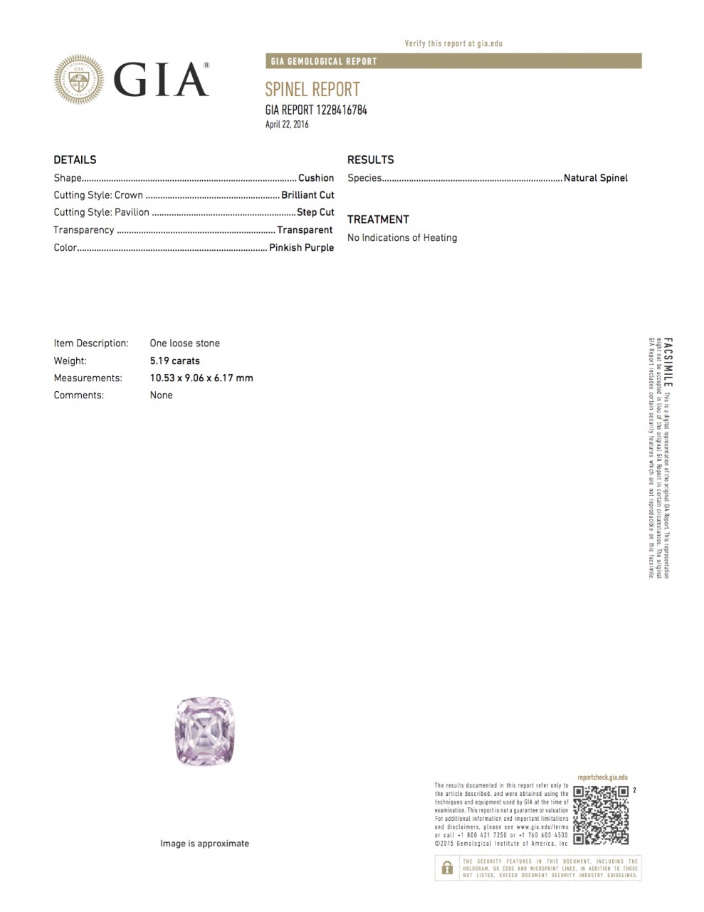 Шпинель весом 5,19 карат, происхождение природное, цвет Pinkish Purple, облагораживание отсутствует