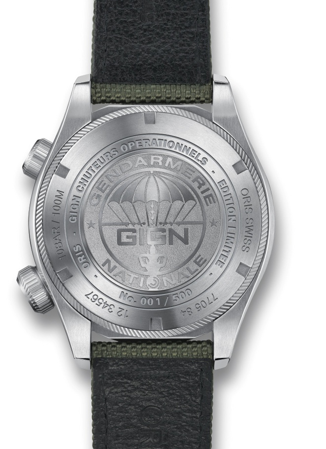 В партнерстве с Groupe d’Intervention de la Gendarmerie Nationale (GIGN) - элитным подразделением сил специальных операций французской полиции - швейцарская часовая компании Oris выпустила новую лимитированную модель GIGN Edition Limitée (Ref. 01 733 7705 4184 TS), отличающуюся наличием интегрированного барометрического альтиметра (высотометра).