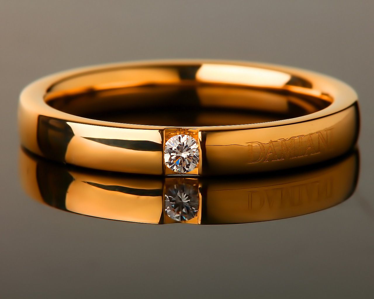 Обручальное золотое кольцо с бриллиантом.Damiani.