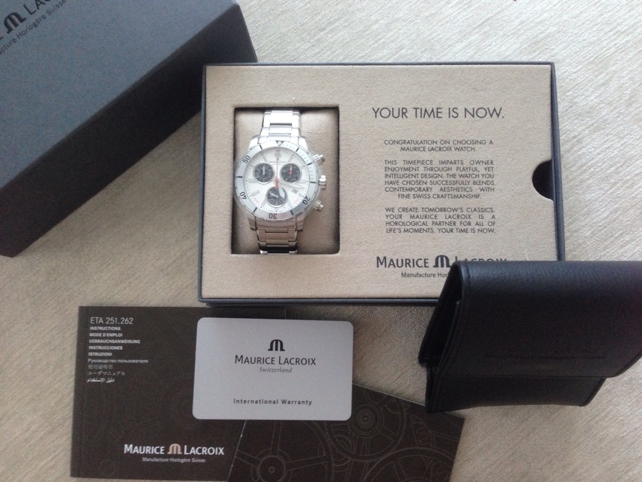 Комплект: коробка, часы, бирка, документы, гарантийная карточка, сертификат хронометра, кожаный чехол для транспортировки