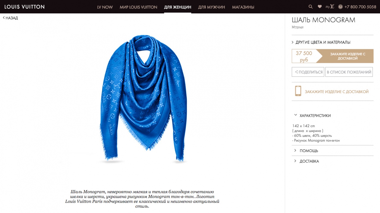 LOUIS VUITTON роскошная шаль-палантин, цвет ярко-синий!