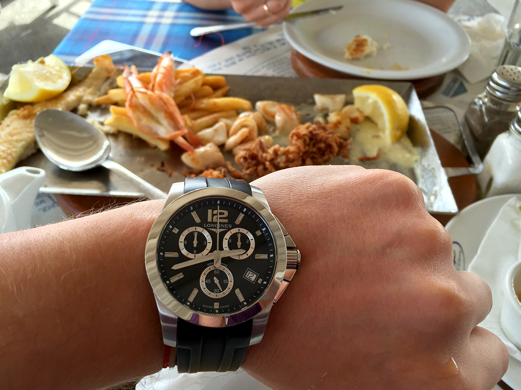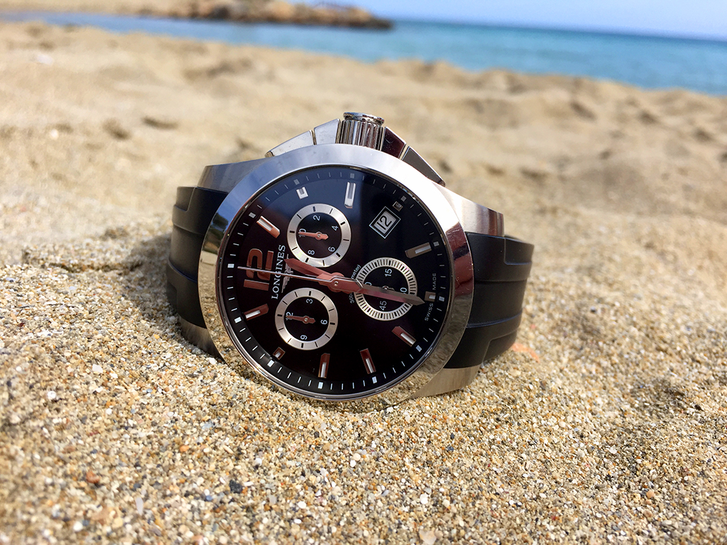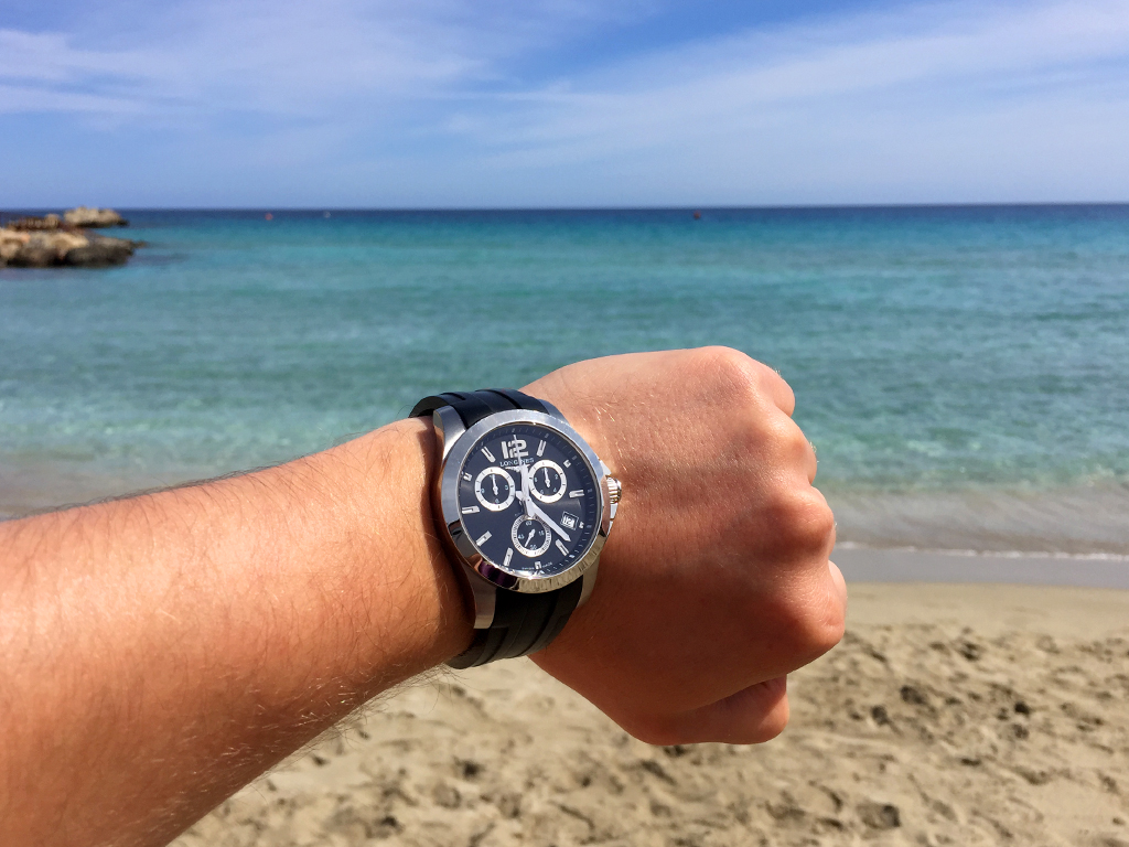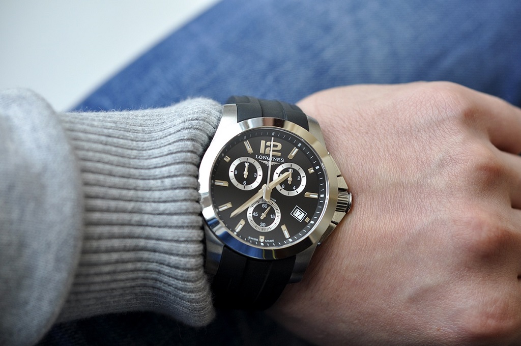 Продам оригинальные швейцарские часы Longines Conquest с хронографом, в сочетании с оригинальным каучуковым ремешком на родной клипсе. Такой ремешок из более дорогой коллекции Лонжин с керамикой, заказывал у официального дилера отдельно за 150$.