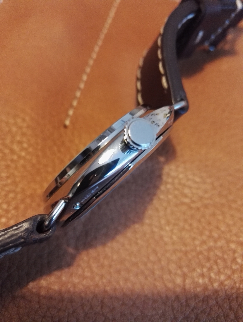 Задняя крышка и заводная головка завинчивающиеся, с резиновыми уплотнениями.