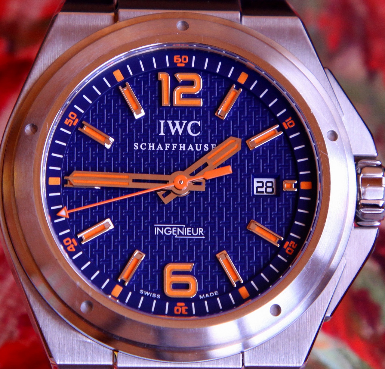 И шел я угрюмый и хромой (подвернул конечность) по заснеженной Рашке и думал, ну почему? Ну как же? Ну и зачем? Пока, опять же Виктор, мне не ткнул перстом своим наукоемким в каталог виртуальный и сказал: «Зри, отрок, и иже херувимы!». И что бы Вы подумали? Узрел. Две недели перся в сей голубой девайс — не подумайте чего дурного и атеровентикулярного! А потом, еще один хороший человек, сообщил, что есть такое чудо в Москве . За сим и отправился я в лабаз. Посмотрел, пощупал за бока Инженера , да и подумал... Ну, что за беда?! Ну мое Ж — надо брать! Положил рядом с обычным 44мм (керамический безель) инженером «с незаконченным высшим» — ой, мал, ой, короток. Про обычного и страшно подумать, в своих 42-х мм... утонет безвозмездно. Для Вас, коллеги, я сделал фотографии, даже не поленился и снял зеркалкой, а не как обычно, мыльницей... Но все-равно, суть Инженера и АРИЙСКУЮ красоту этих часов передать линзами невозможно. Собственно, поэтому я так долго и «чесался» в вопросе выбора... а приехал, увидел глазенками и снимать с руки после примерки не стал. Что особенно понравилось,конечно, размер. 46 мм., да еще в стали (титан у иваси специфический, на любителя). Доложу я Вам, это серьезной аргумент, это ОЧЕНЬ серьезный аргумент. При таком размере, сразу замечу, эргономика реализована на высшем уровне — часы сидят на запястье, как влитые. Цифер — невероятно хорош (!!!), впрочем, как и у всех Инженеров. Мне кажется, когда ивасишные дизайнеры чесали репу насчет гармонии оранжевого и синего, у них, наверняка, возникали сомнения, но конечный результат, по-моему, превзошел все ожидания. Корпус частично сатинированный, частично полированный — смотрится очень эффектно (опять же, немецкая эстетика и законченность). Кстати, показалось, что будет достаточно царапуч зеркальный безель, лучше бы они его сделали матовым. По весу — тяжелые, ощутимо тяжелые- 178 г.. Каучуковый ремень очень высокого качества , более комфортный чем у ПАМов. И порадовало то, что хоть в этот раз иваси намутили не маргинальный узкий стрэп , а-ля «псовья шлейка», а такой, достойный «пацанский» каучук...кстати, по фактуре, он мне напомнил резину, как у моих давно забытых, «марининых» улиссов. Часы достаточно толстые (15 мм), т.к. наличествует двойной корпус — верх из твердой стали, внутренний «стакан» из мягкой стали, дабы можно было спать с часами на магнитных катушках и не бояться намагничивания. Калибр 80110, с автоматическим заводом Пеллатон, 28800, 28 каменьев. На сим, позвольте закончить сказ о славном калор-готичном отпрыске и потомственном Инженере. Всем всех благ и мерного тиканья на запястьях.