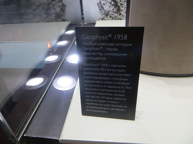 Geophysic 1958 стоит автоматический механизм, запас хода равен 43 часам,Calibre 898/1. водо защита 100 м. Механизм обладает функцией остановки секундной стрелки, устройством микрометрической настройки баланса, противоударной системой Kifparechoc, в нем используются цилиндрические зубчатые колеса для более плавной передачи крутящего момента, сектор автоподзавода вращается благодаря шариковому керамическому подшипнику, не требующему смазки. Внутренний корпус из мягкой стали служит для защиты механизма от магнитных полей.