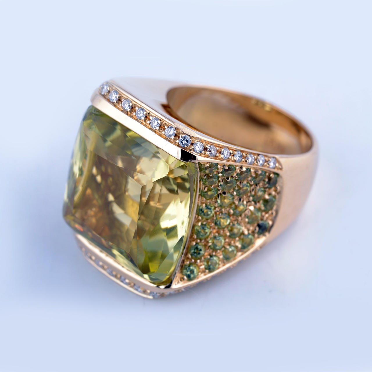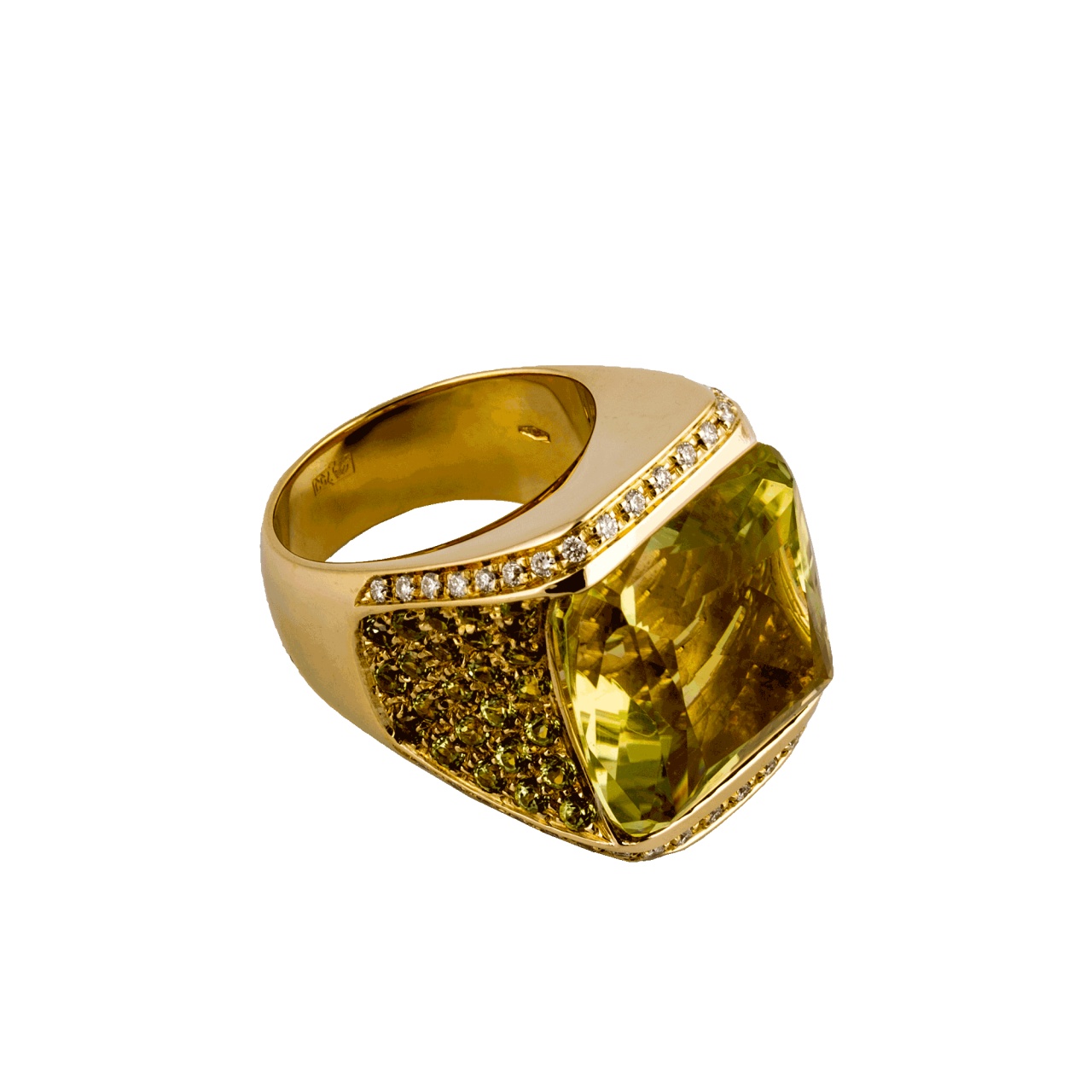 Супер-цена !! Шикарное кольцо Piantelli из жёлтого золота с бриллиантами и кварцем