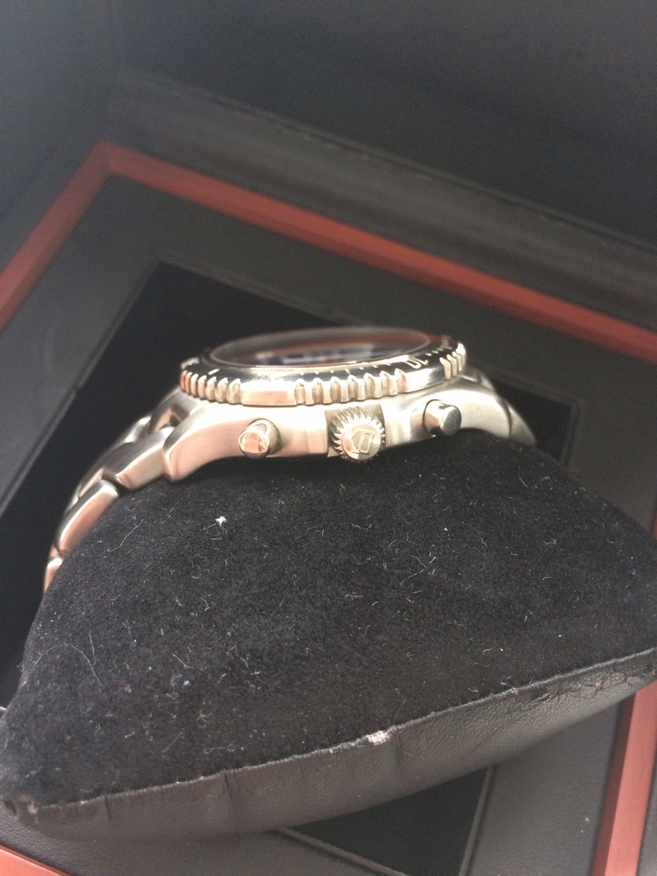 - минутный счетчик хронографа расположен на основном циферблате (под белой стрелкой красная)