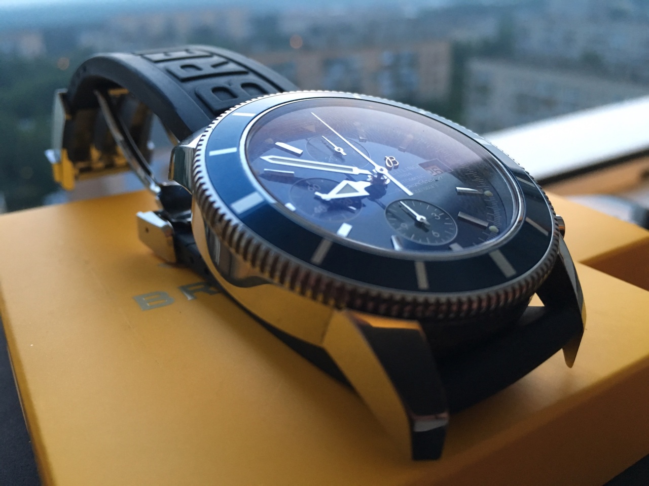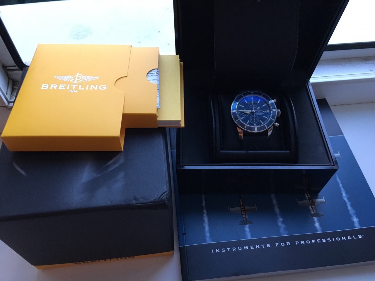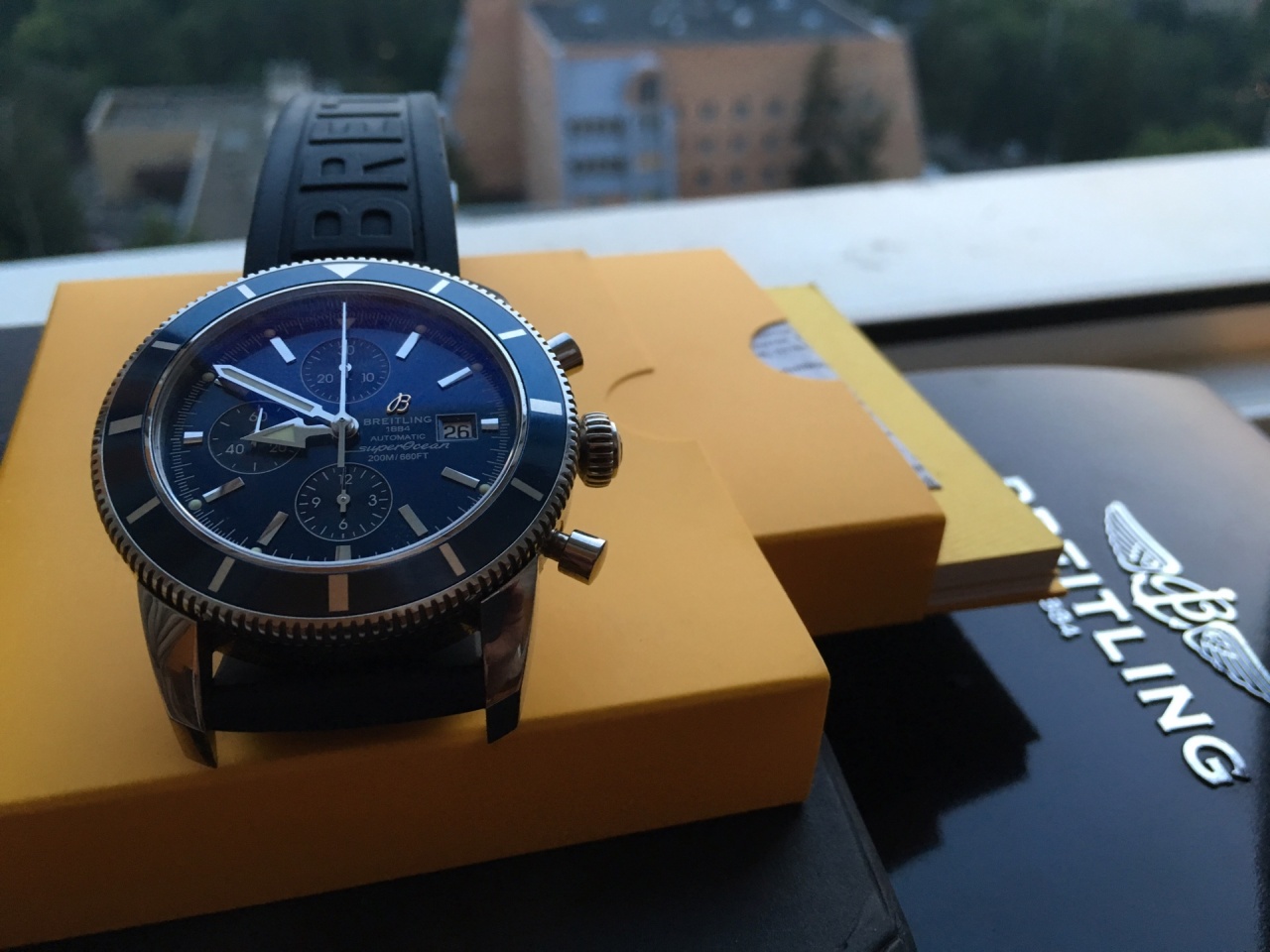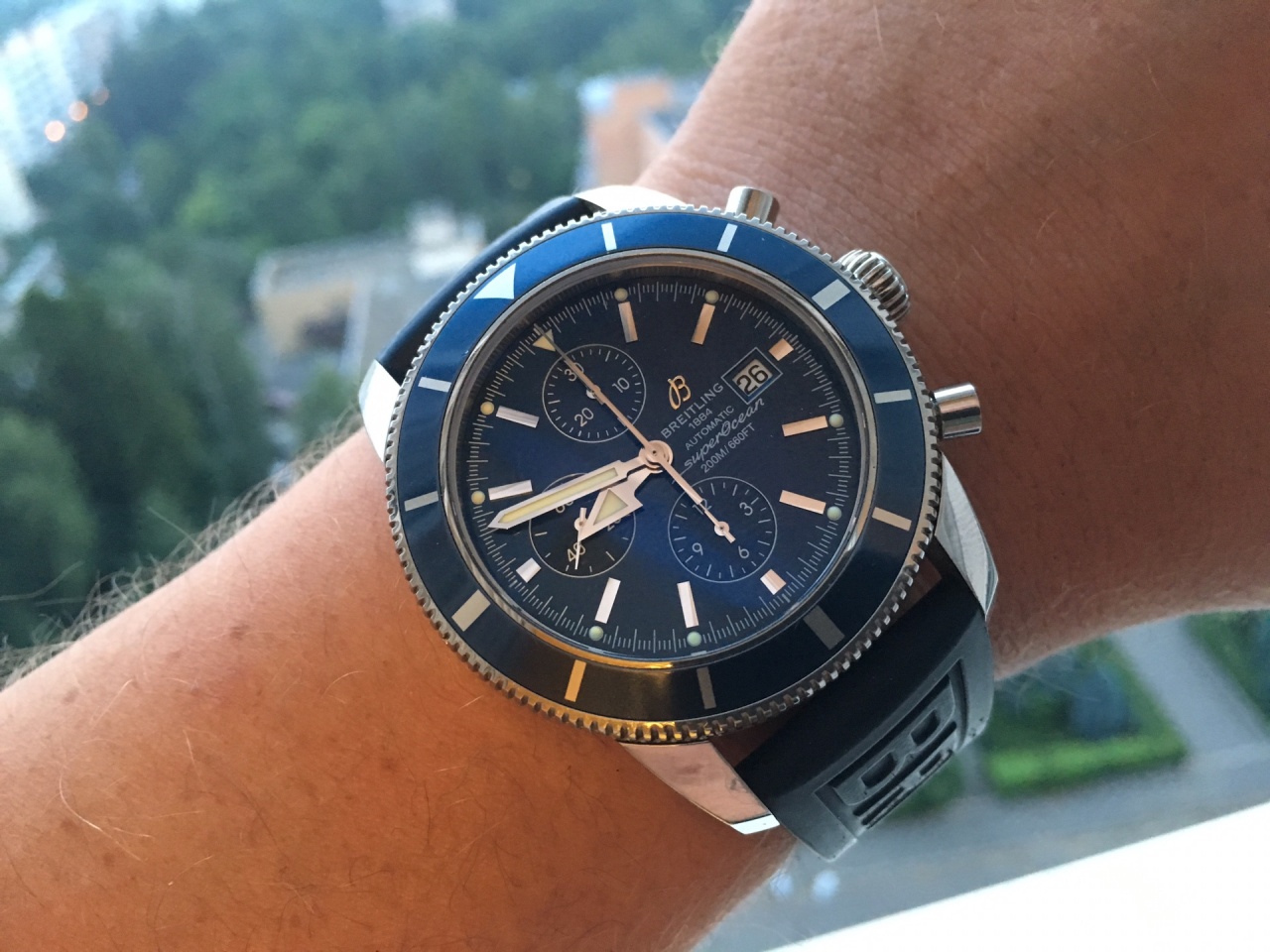 Superocean Héritage Chronographe сочетает в себе необычный внешний вид с превосходными рабочими качествами. Мощный стальной корпус диаметром 46 мм, водонепроницаемый на глубине до 200 м (660 футов), скрывает в себе механизм с автоподзаводом, имеющий официальный сертификат хронометра. Приверженцы стиля, прочности и комфорта оценят широкий выбор ремешков и каучуковый ремешок хорошо сочетается с видом безеля. Модель 46 мм оснащена счетчиками на 9 и 3 часах. В апреле возил на Бутырский вал,сделали полное обслуживание,дали заключение. Всегда носил бережно и дорожил. Купил новые,эти готов продать.