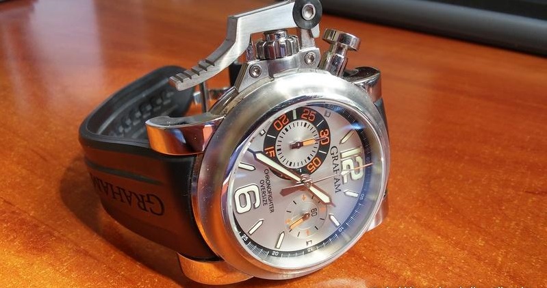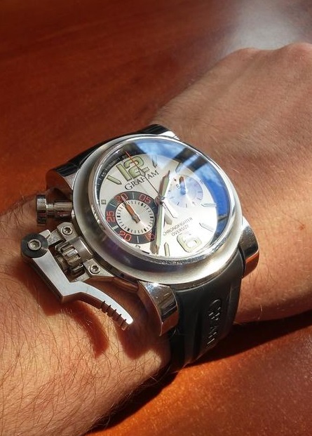 Особенностью секундомеров был рычаг, при помощи которого можно было управлять часами? даже если на руки надеты толстые перчатки. Эта черта сохранена и в модели GRAHAM Chronofighter Silver Ranger. Нажимается рычажок большим пальцем.