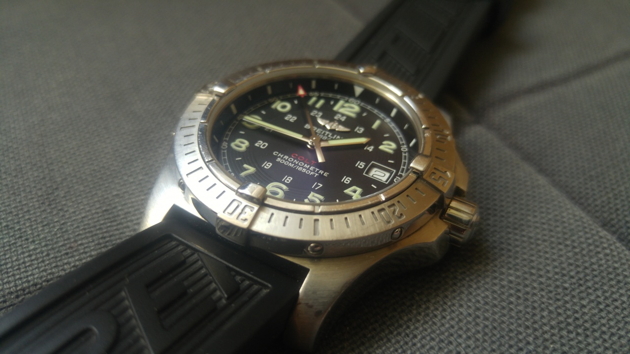 Продам Breitling colt II quartz A74380, настоящий tool watch, не боятся ни воды, ни грязи, ни ударов. На мой взгляд одна их самых лучших и удачных моделей у брайтов. Каучук в прекрасном состоянии. Хочу обратить внимание что часы ни разу не полировались, что для данных часов производившихся с 2006 по 2011 очень большой плюс, и выгодно отличает их от заполированных обмылков. Обоснованный торг всегда уместен. Возможен обмен на breitling seawolf, breitling Chronomat 44 Airborne, breitling Bentley B06 S AB061221/BD93/980A, breitling Bentley Barnato 42, rolex submariner с датой или без нее, или на что нибудь интересное с моей доплатой.