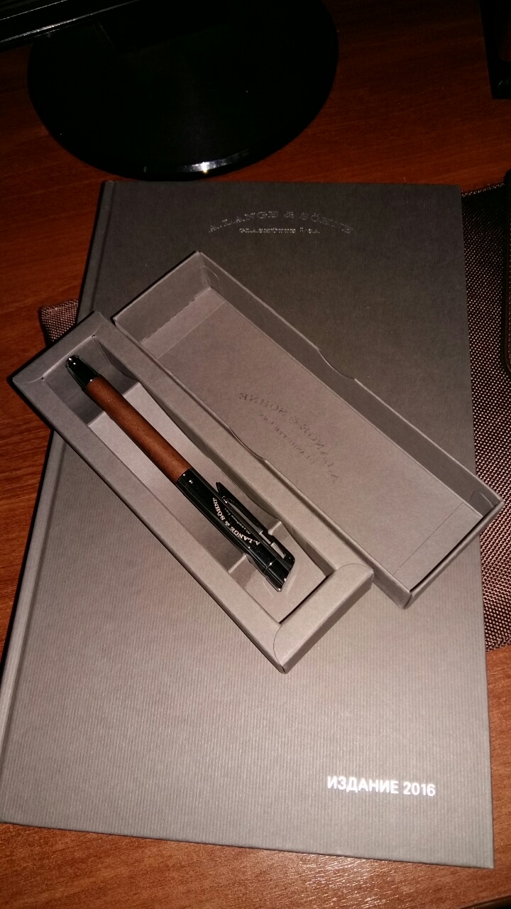 Здравствуйте форумчане, я интересуюсь морокой часов A. Lange & Söhne, летом изучая сайт одноименной компании я заметил не точности в некоторых текстах, описывающих сложный механизм. Написал письмо в Ричмонд в офис компании A. Lange & Söhne и изложил суть проблемы. Чуть позже по просьбе сотрудников компании я написал более подробное письмо с указанием мной замеченных не точностей. Через некоторое время мне написали, Полина-сотрудник компании, поблагодарила меня за помощь и пообещала комплимент. Целый месяц за мной гонялся курьер, и вот сегодня мне вручили каталог и прекрасную увесистую авторучку. Пустячок а приятно. Зачастую наша жизнь состоит из мелочей, и чертовски здорово кода эти мелочи положительного характера.