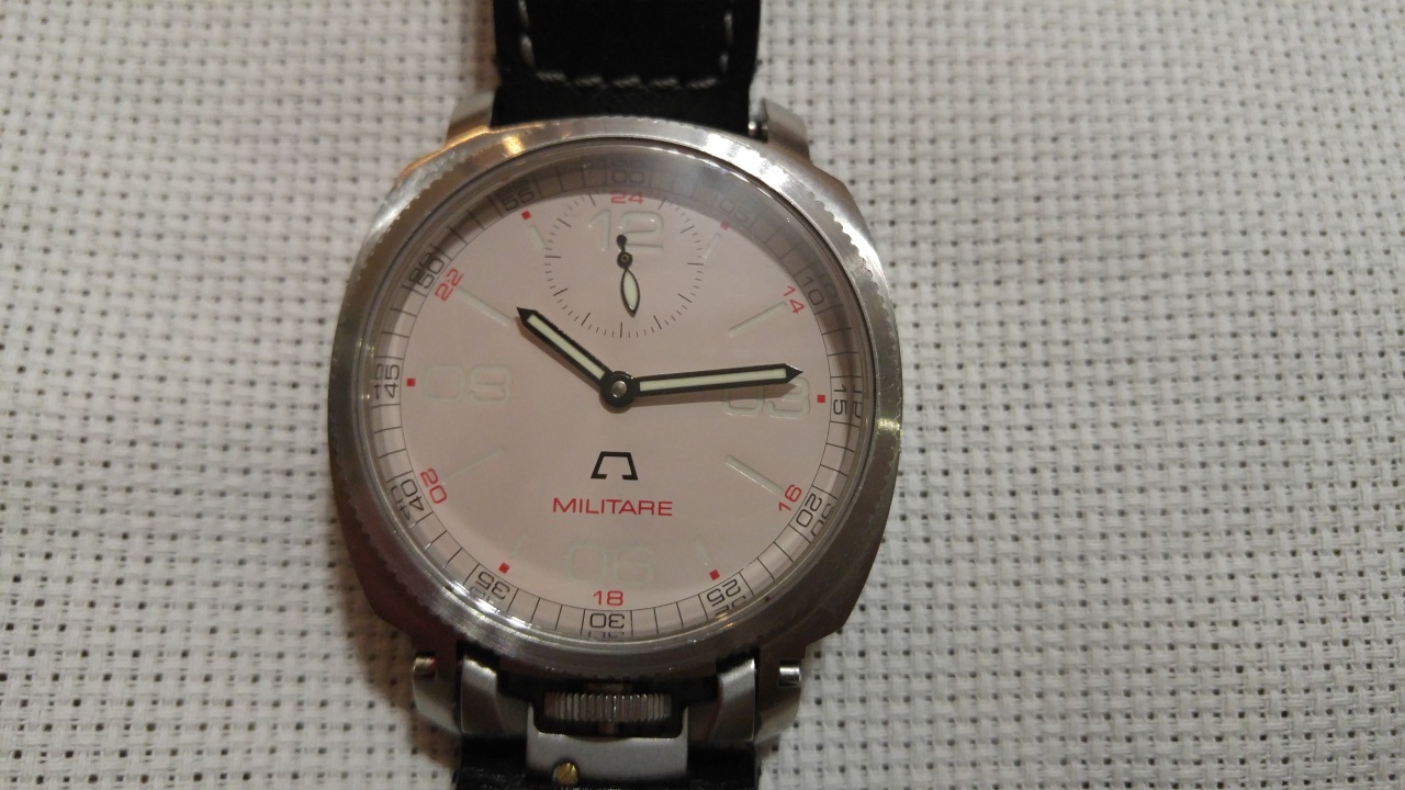 Предложу механику ANONIMO OPERA MECCANA mod 2004, militare 12 ATM. Размер - 44 мм. Запас хода 49 часов. Точность хода часов +2 сек. в сутки. Оригинальная коробка с документами к сожалению утрачена при переезде. Часы приобретались в США в 2009 г. по цене 2950$. Часы из личной коллекции отработали без нареканий.