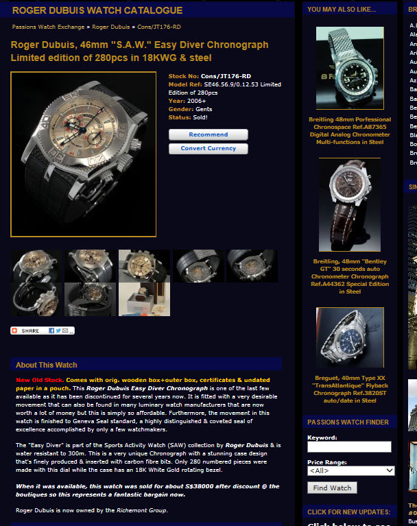 Roger Dubuis Easy Diver Chronograph 300m Лимитированная серия из 280 штук. Полный комплект!!! Состояние прекрасное.