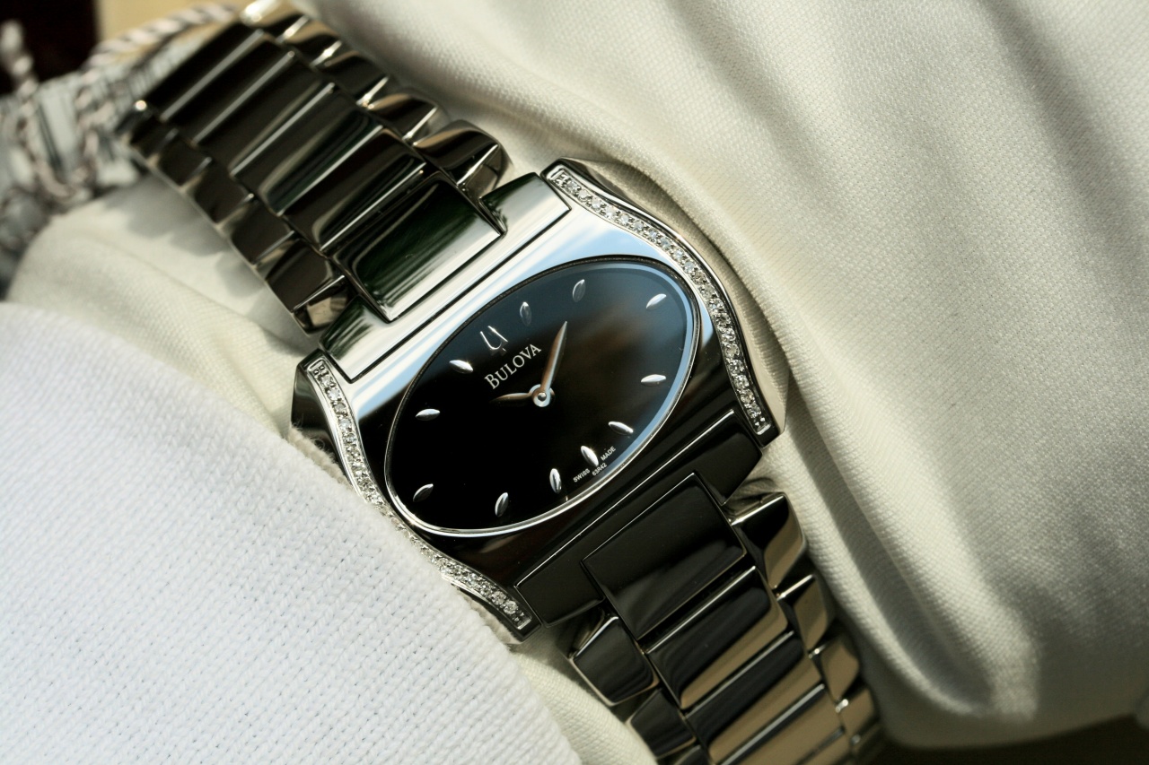 [женская] BULOVA ** 40 бриллиантов ** черный цифер ** браслет
