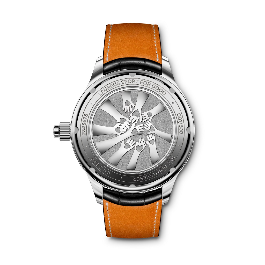 Глухая задняя крышка изделия содержит гравированное изображение рисунка 15-летней китаянки И Синь — участницы программы «Special Olympics China» и победительницы ежегодного конкурса детского рисунка IWC, в этот раз определяемого темой «Время заботиться».