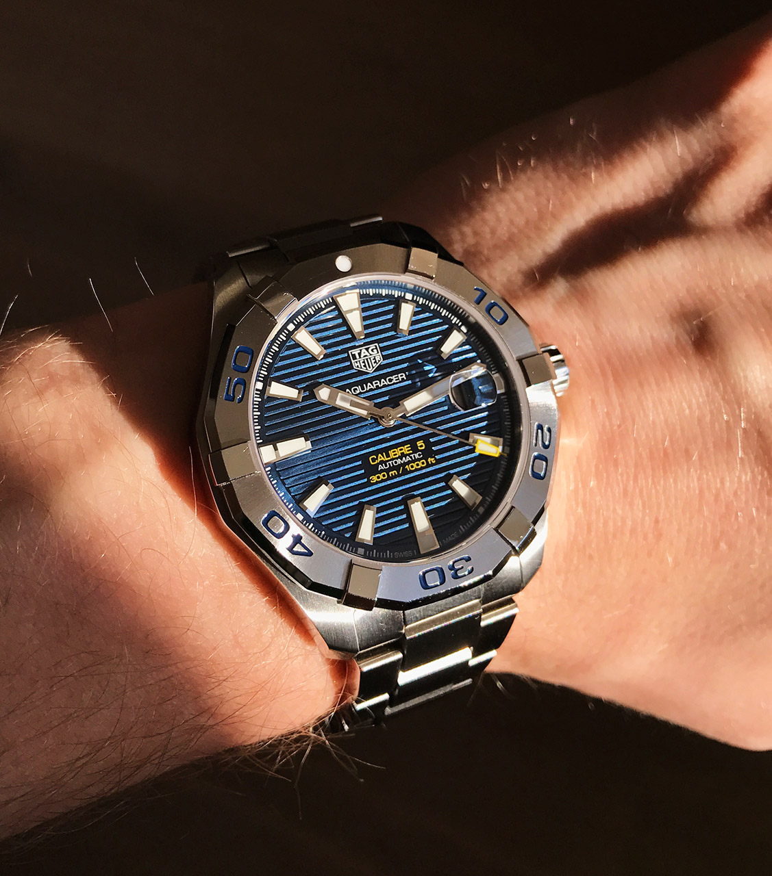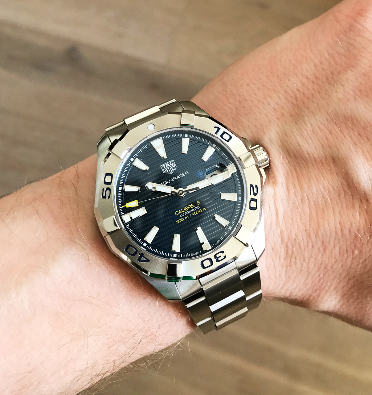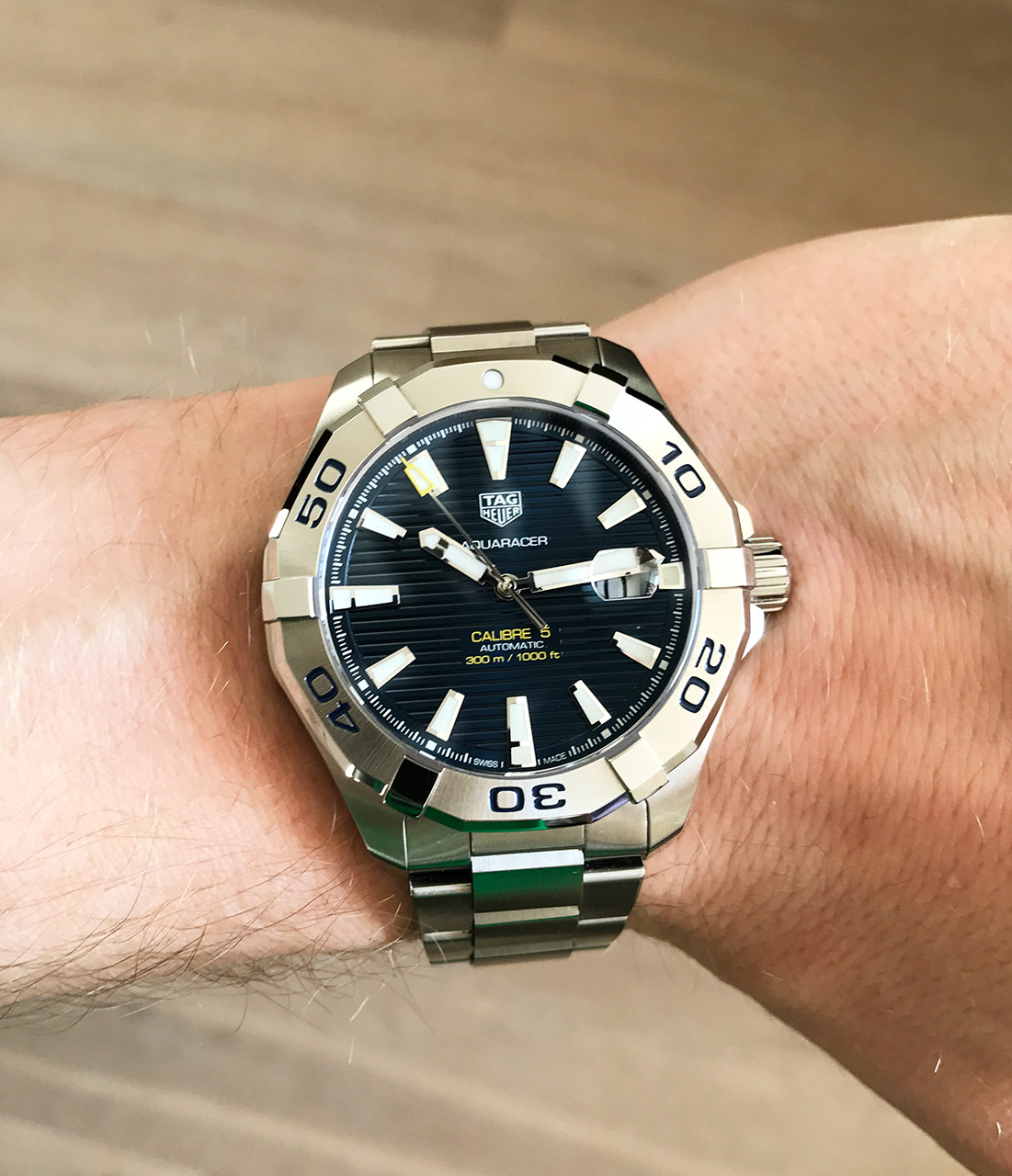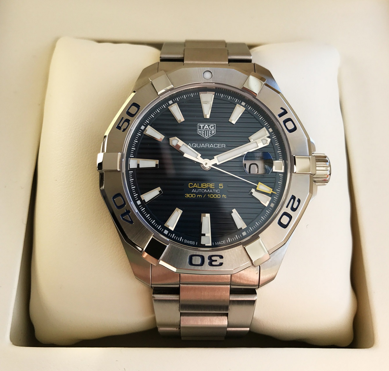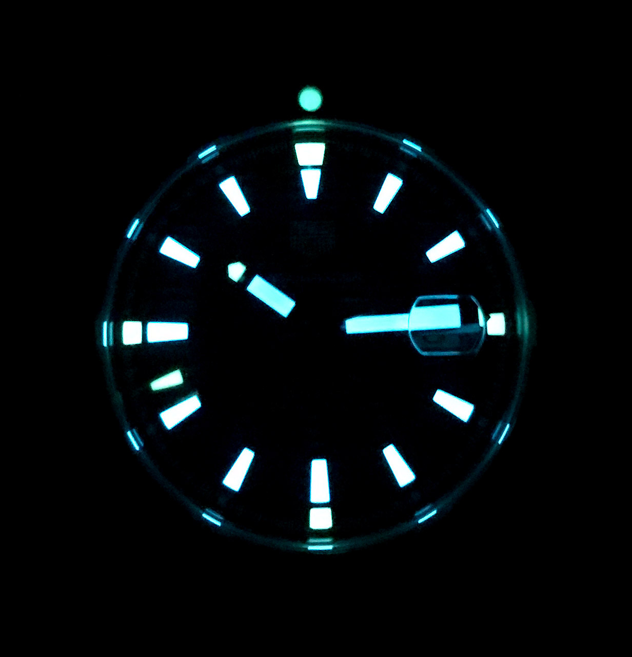 Циферблат в зависимости от освещения выглядит от светло-синего до черного. Браслет уменьшался, все звенья в комплекте.
