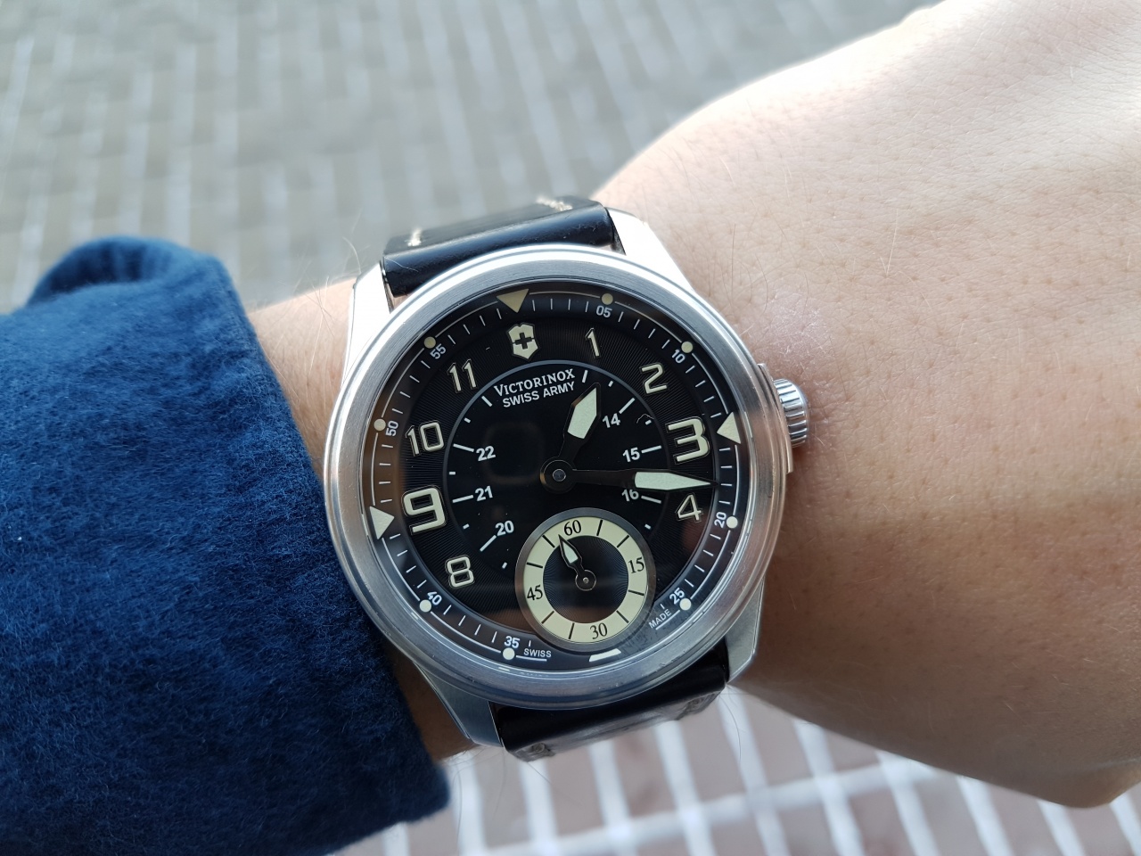 Циферблат: серо-синий , накладные люминесцентные метки