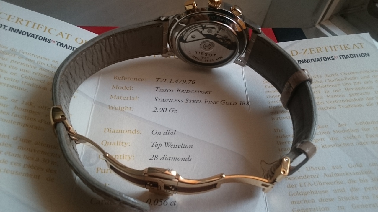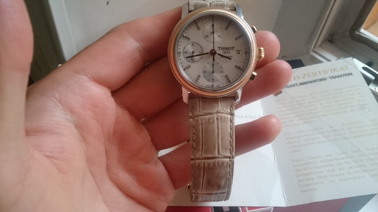 Так-то это женская модель, но от мужской модели отличается только перламутровым циферблатом и наличием бриллиантов на рисках