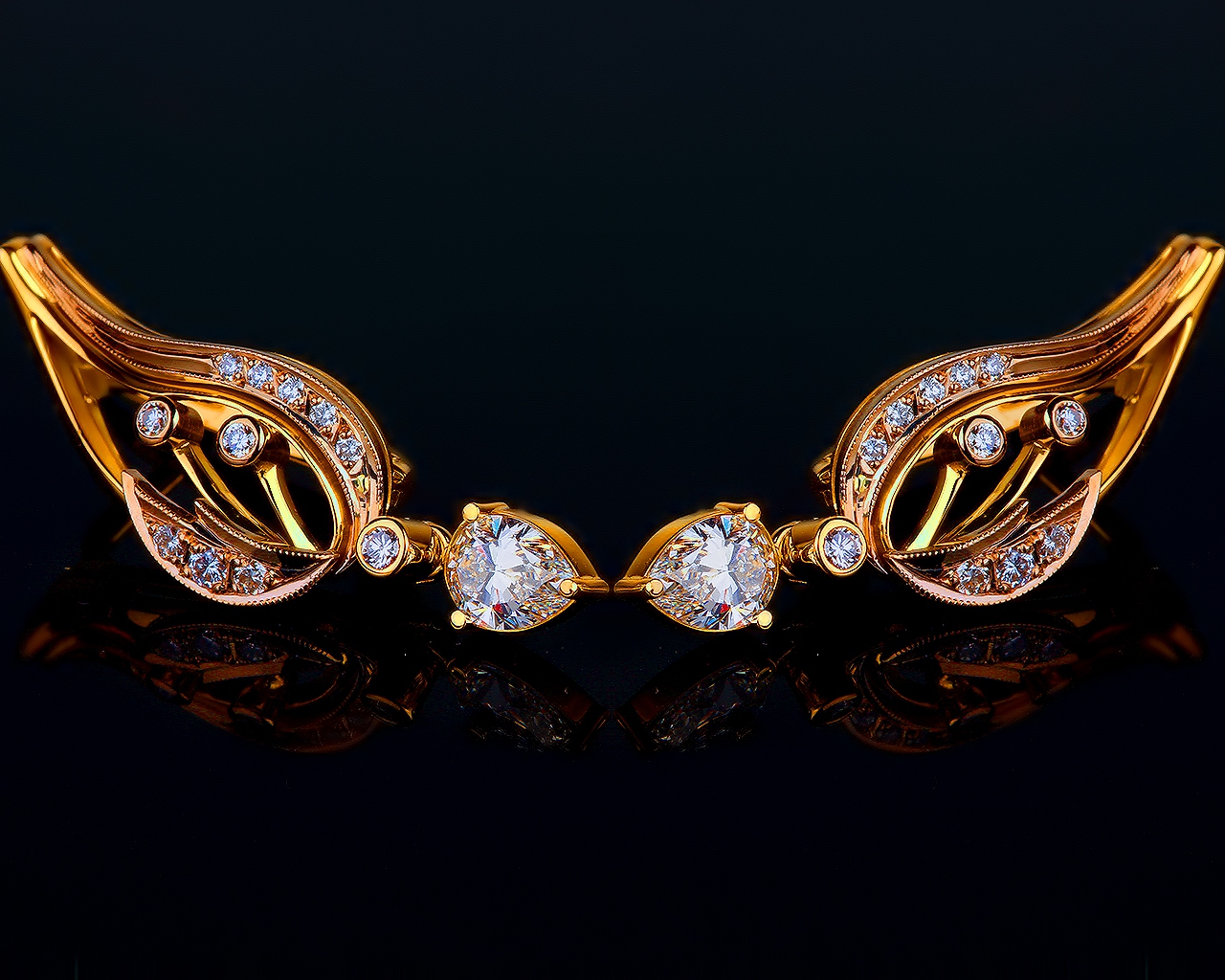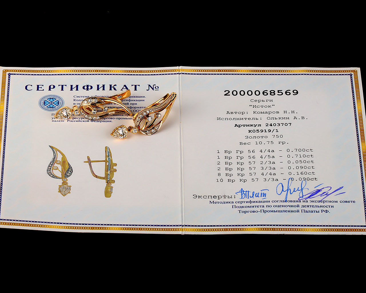 Винтажные золотые серьги с бриллиантами 1.8ct.