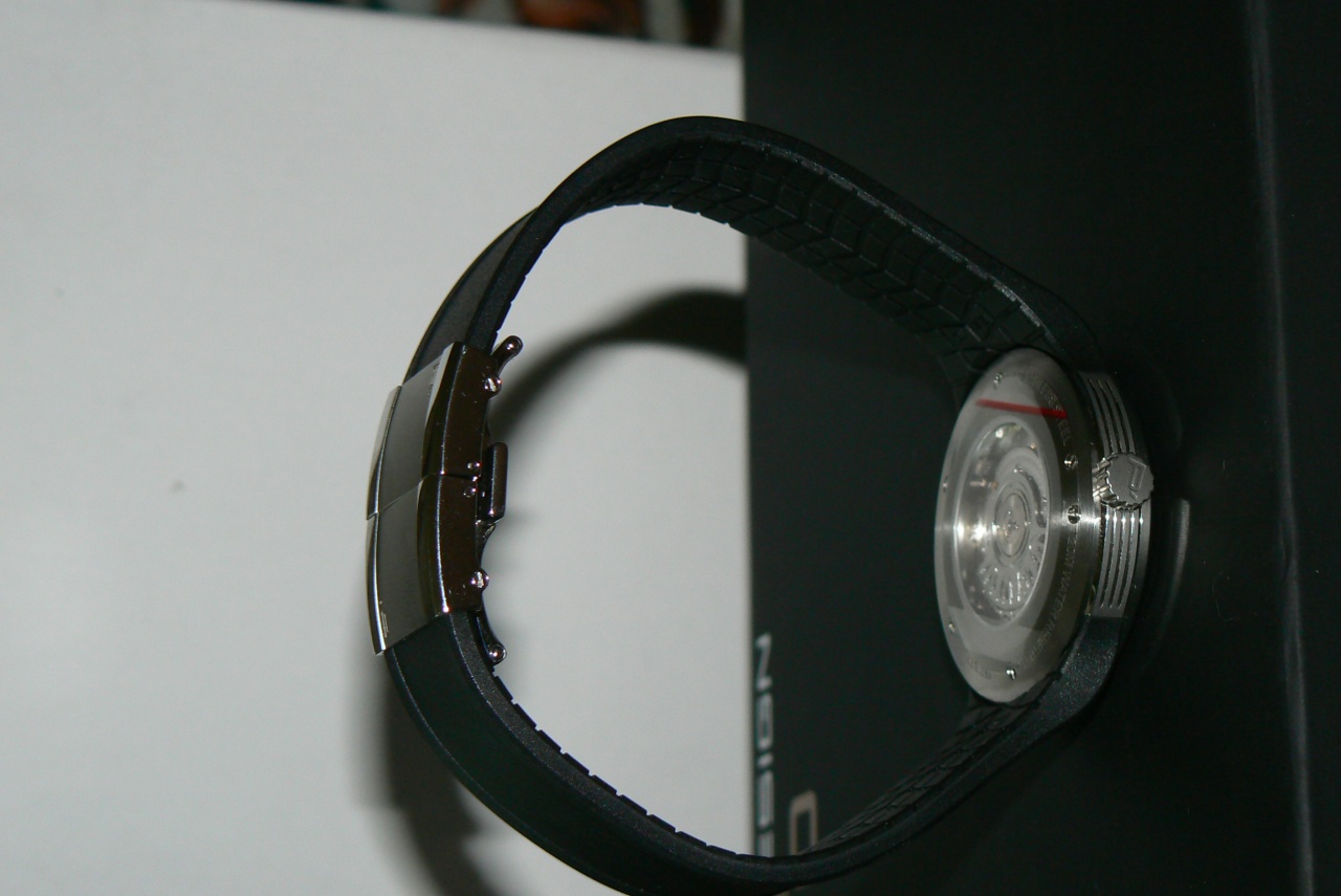 Новые стальные автоматические часы Porsche design P'6310 на каучуковом ремне с серым циферблатом.