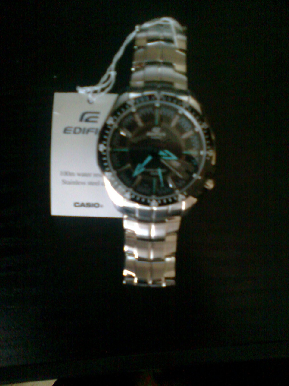 (днем метки на цифере точно такие же голубые как и сами стрелки, в темноте метки светятся действительно чуть зеленоватым, в отличие от более голубого свечения стрелок, но мне свечение стрелок очень близким по цвету к меткам показалось тем не менее, ИМХО на полтона различие могет быть, но не более того)
