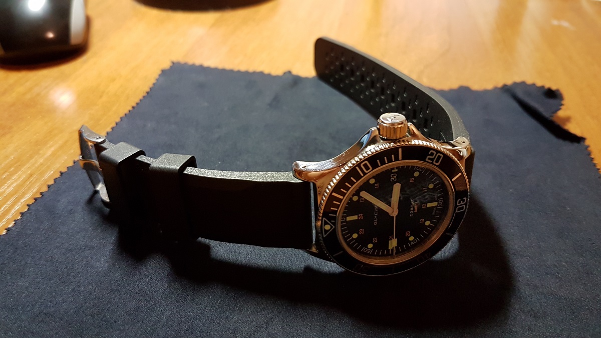 В связи с покупкой более дорогих часов продаю свой Glycine Combat Sub. Завинчивающаяся ЗГ, водозащита 200 метров.