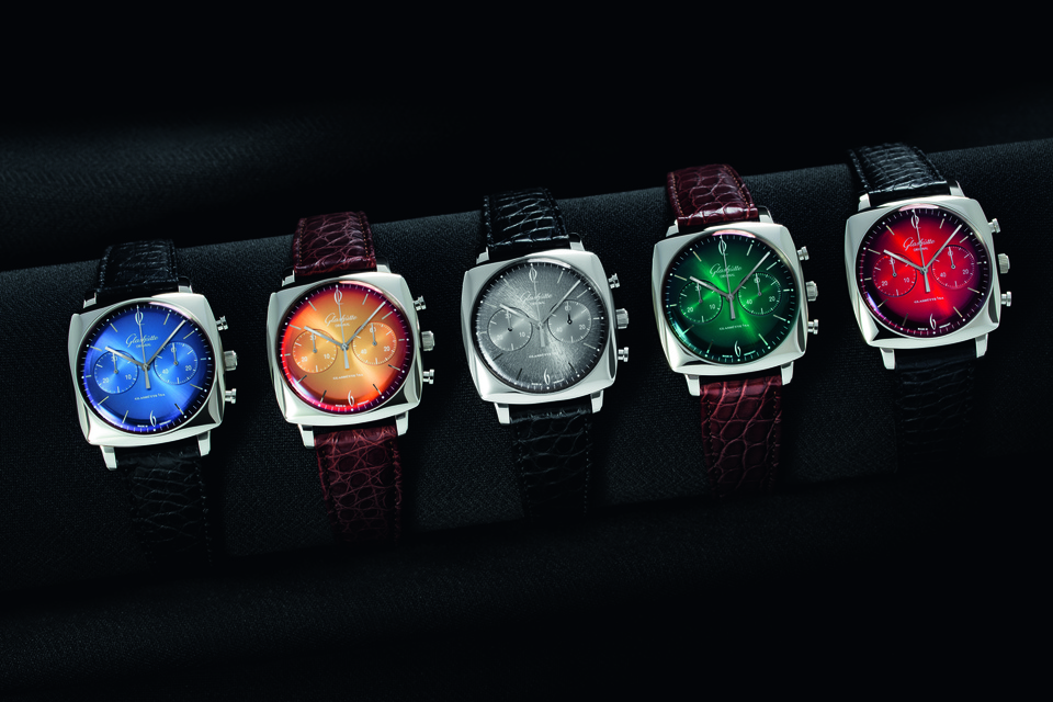 Пять новых моделей имеют оригинальные цветные циферблаты, изготовленные на принадлежащей мануфактуре Glashütte Original фабрике в Пфорцхайме, Германия. Созданные с использованием аутентичных инструментов и методов 1960‐х гг., циферблаты являются результатом чрезвычайно сложного и трудоемкого процесса. Специалисты по изготовлению циферблатов Glashütte Original уделяют особое внимание каждому из этапов производства, в частности, нанесению на поверхность цветных лаков для достижения требуемых оттенков и затенений, от светлых центров до темных периметров (метод известный как «эффект деграде»). Все пять моделей отличаются исключительно тонкой отделкой.