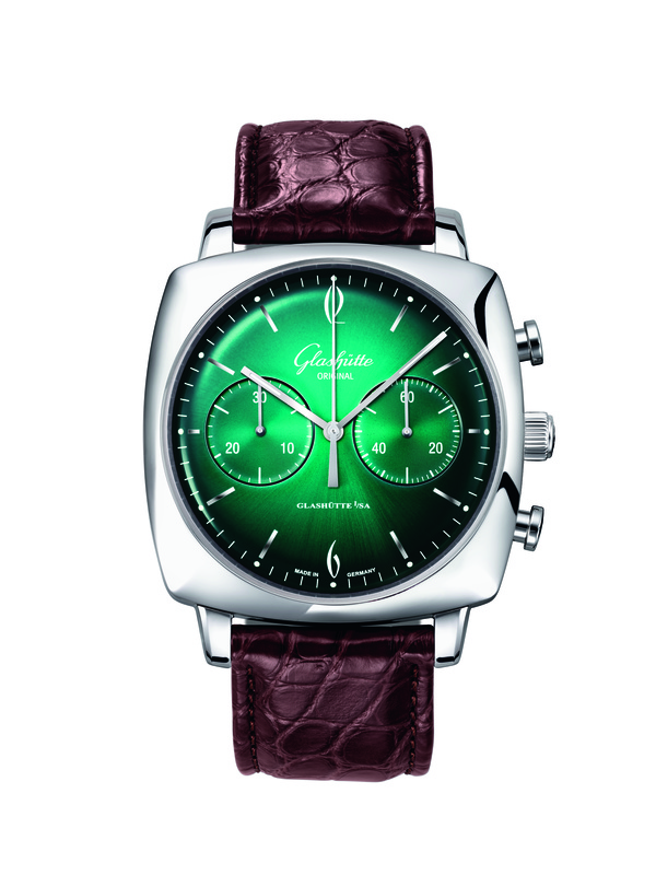 It’s hip to be square! Пять моделей из Sixties Iconic Square Collection имеют корпус из нержавеющей стали характерной квадратной формы «подушка» (или «кушон») размером 41,35 х 41,35 мм и оснащены мануфактурным автоматическим механизмом хронографа Калибр 39‐34. Все они снабжены соответствующим ремешком из кожи луизианского крокодила: коричневым ‐ в моделях с циферблатом зеленого и оранжевого цвета, черным ‐ в моделях антрацитового, синего и огненно‐красного цвета. Серия из пяти моделей Sixties Iconic Square Collection ограничена 25 экземплярами каждой. Они будут представлены в бутиках Glashütte Original и ряде розничных магазинов по всему миру.