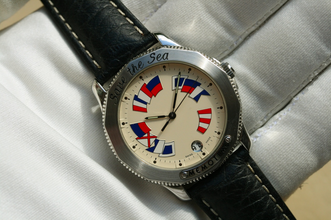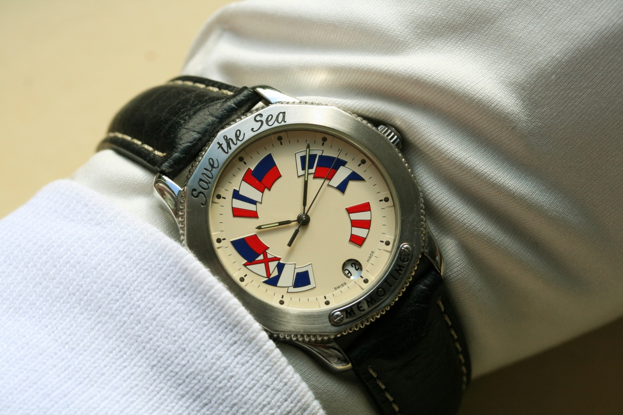 CORUM DESIGN MEMOTIME SAVE THE SEA ** светлый циферблат ** черный ремешок