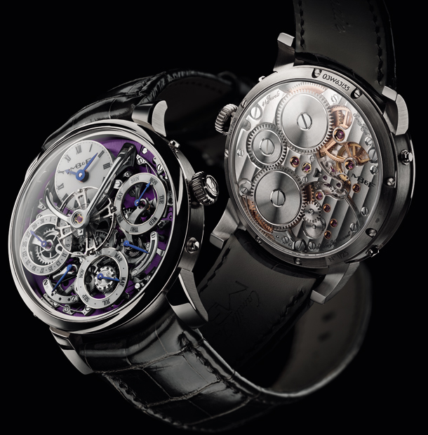Модель: Три лимитированные серии по 25 экземпляров: из платины 950 пробы (лицевая сторона голубого цвета), из розового золота 18 карат (лицевая сторона серого цвета) и из белого золота 18 карат (лицевая сторона фиолетового цвета), и неограниченная серия из белого золота 18 карат с лицевой стороной серого цвета.