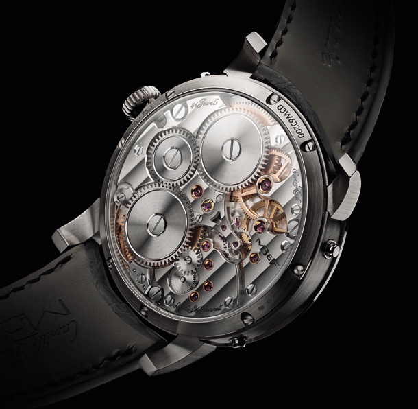 Помимо всего прочего, колонка балансового колеса часов Legacy Machine Perpetual, пожалуй, может считаться самой длинной в мире. Она соединяет баланс, вынесенный на лицевую сторону механизма, с модулем спуска, расположенным с обратной стороны. Надежность и удобство – таковы были главные принципы с самого начала работы над этой моделью. Через прозрачную заднюю крышку хорошо просматриваются не только работающий механизм спуска, но и превосходная ручная отделка платины и мостов.