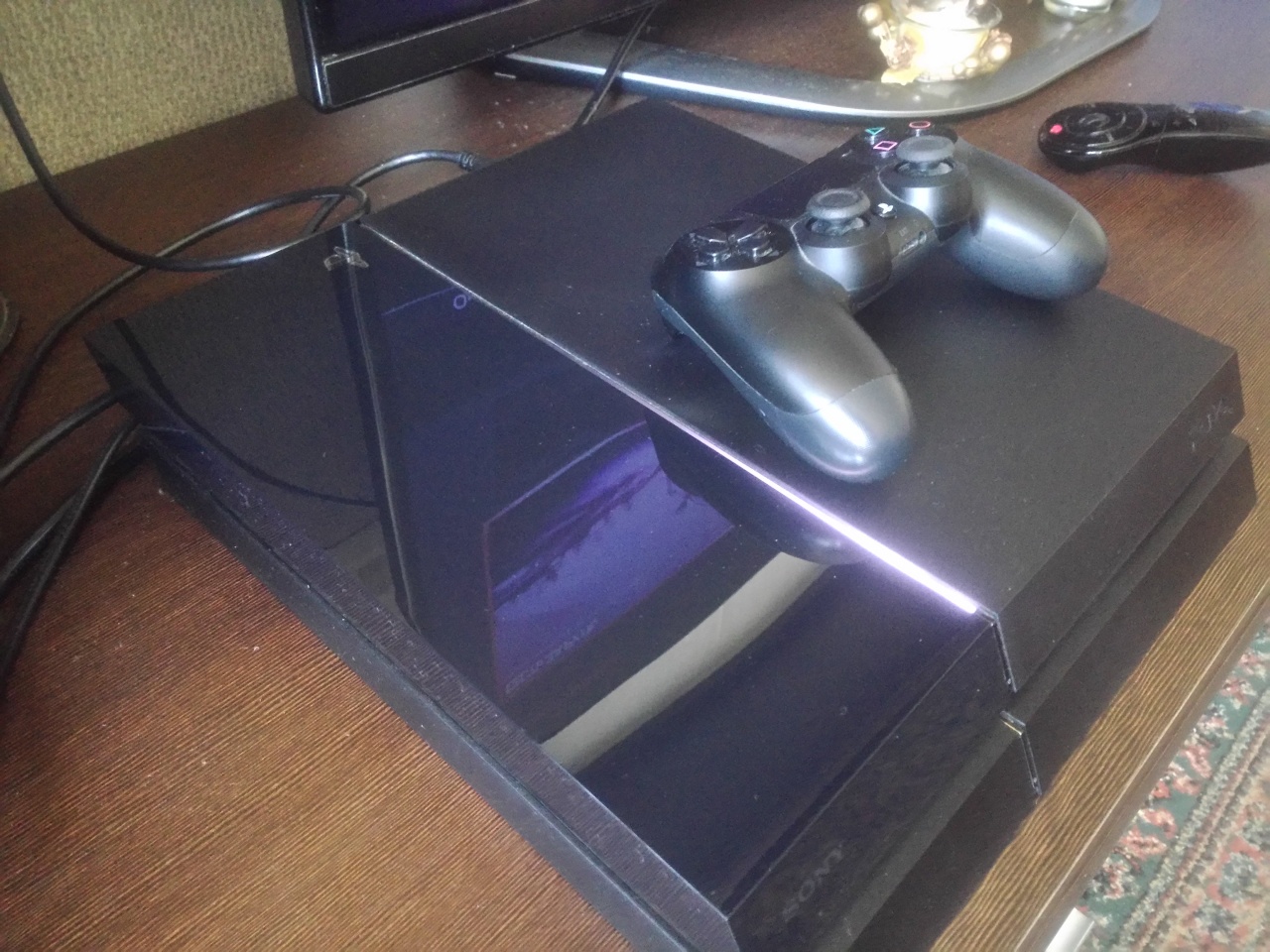 Сама приставка в прекрасном состоянии, как внешне, так и технически. Комплект полный (сама консоль, геймпад, диск с игрой «Driveclub» все коробки, все шнуры, пакетики и всякая прочая чушь.. ничего не выбрасывал, все сохранил). Консоль была приобретена на 2015НГ себе в подарок в магазине М Видео. Не прошел толком ни одной игрушки.. Наиграл смешное количество часов.. Приставка 99,9% времени пребывания в моем пользовании просто пылилась стоя на полке у телевизара и не использовалась.