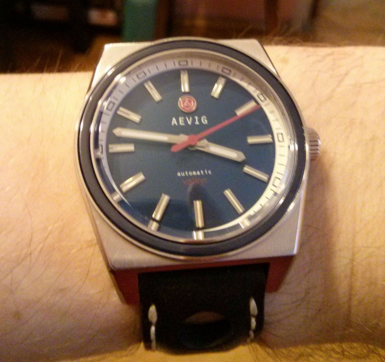 У меня стальной вариант с синем циферблатом и безелем -
