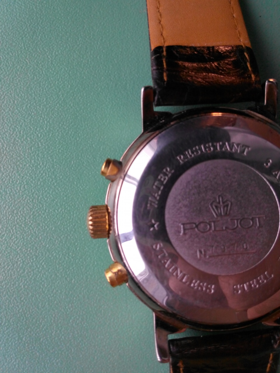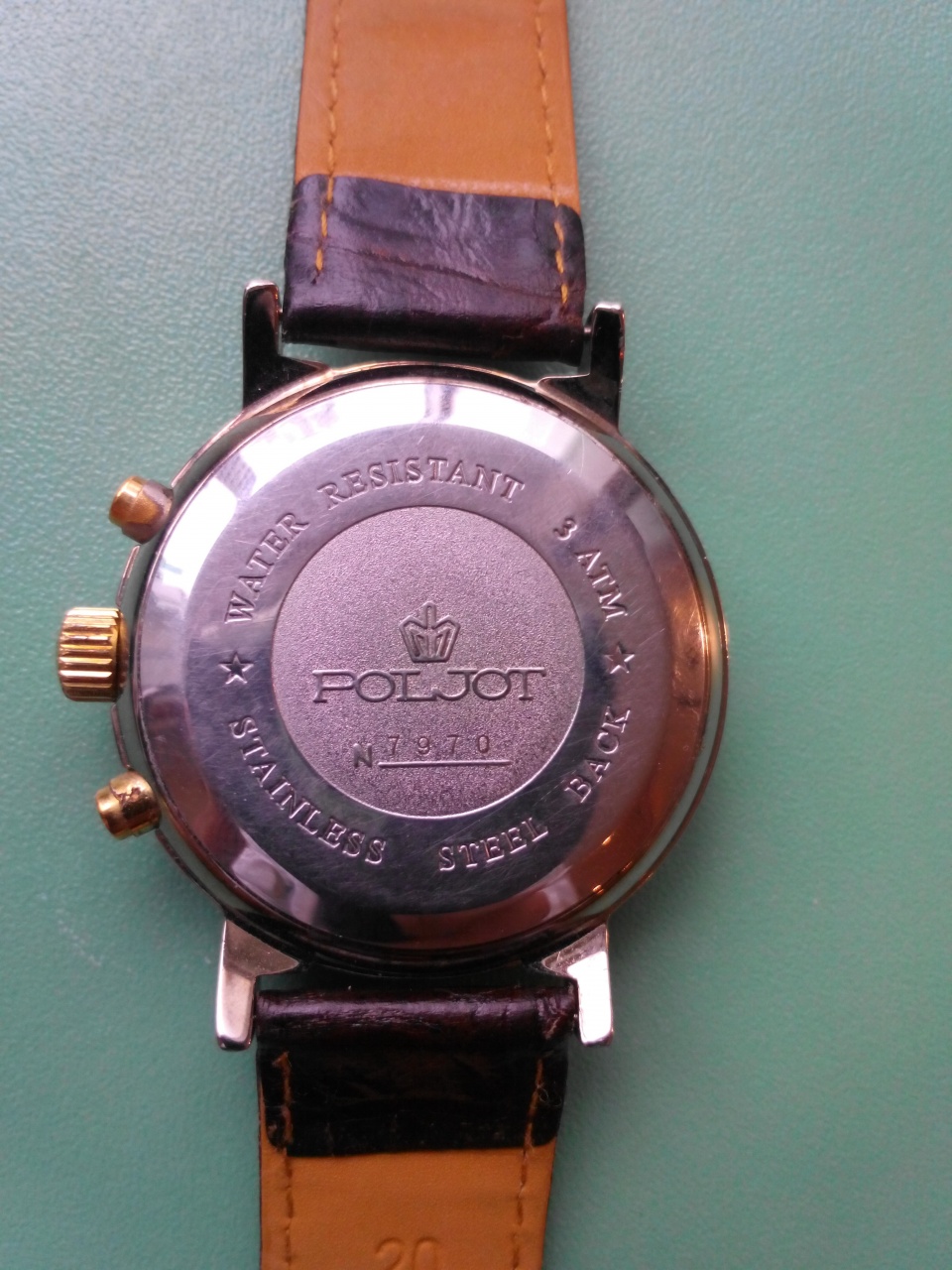 Из минусов: Легкие малозаметные царапины на стекле (так и было) между 12 и 1 по типу буквы Л- сфотографировал со вспышкой. Полировку не делал. Изнутри потерты кнопки. Размер около 40мм. Ремешок 20 по дужкам.
