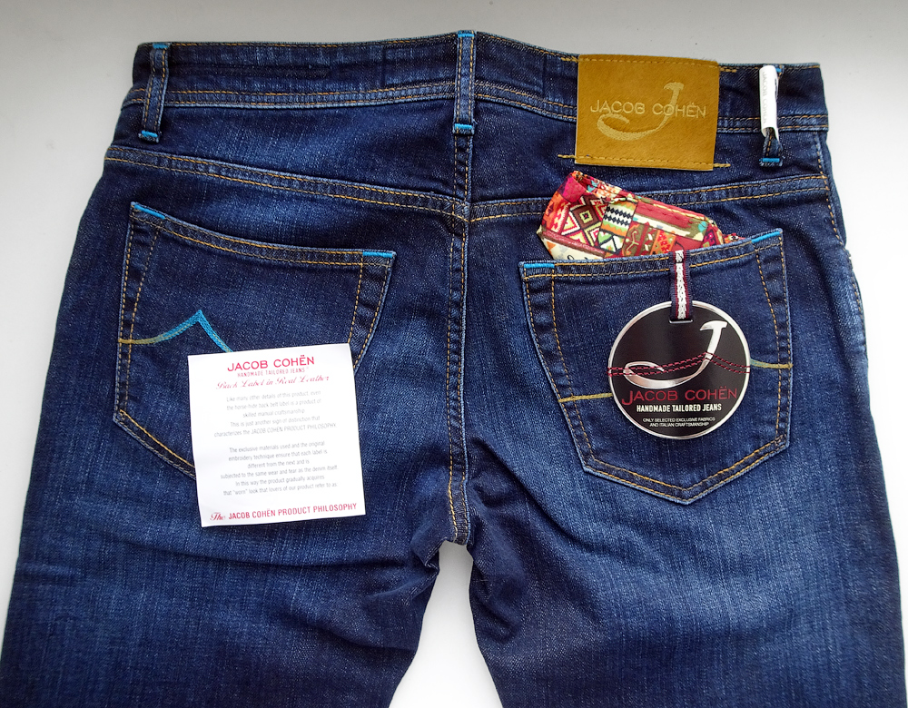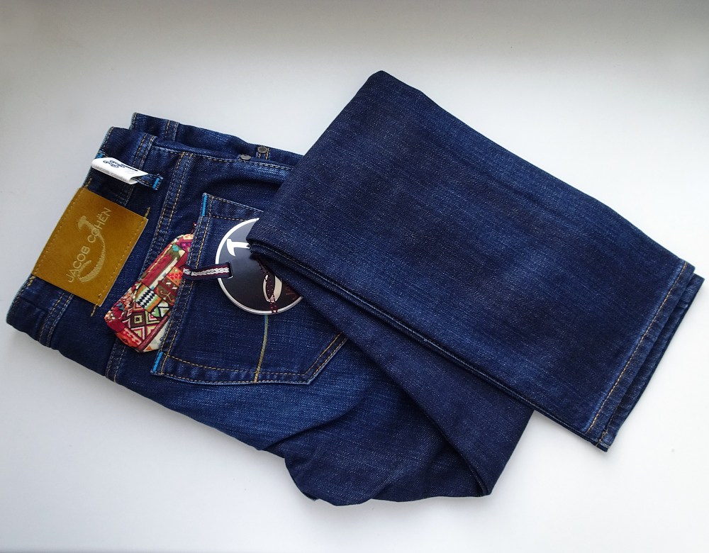 JACOB COHEN стильные мужские джинсы, темно-синие (индиго), яркая прострочка, type 622.c, р.36!