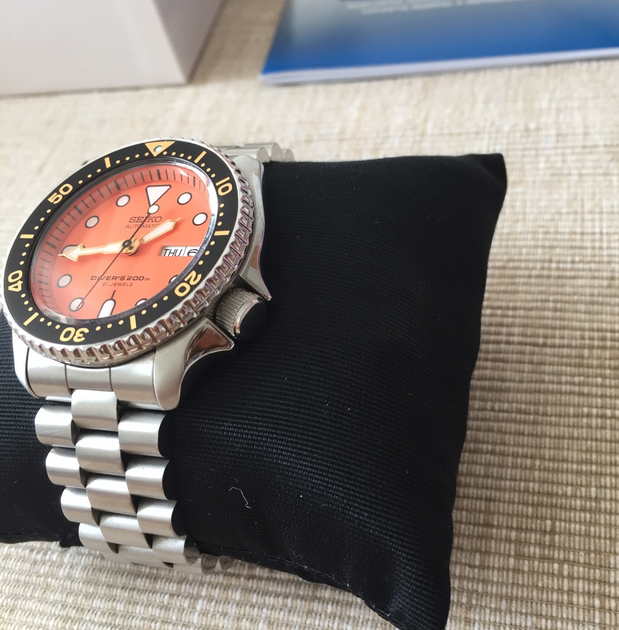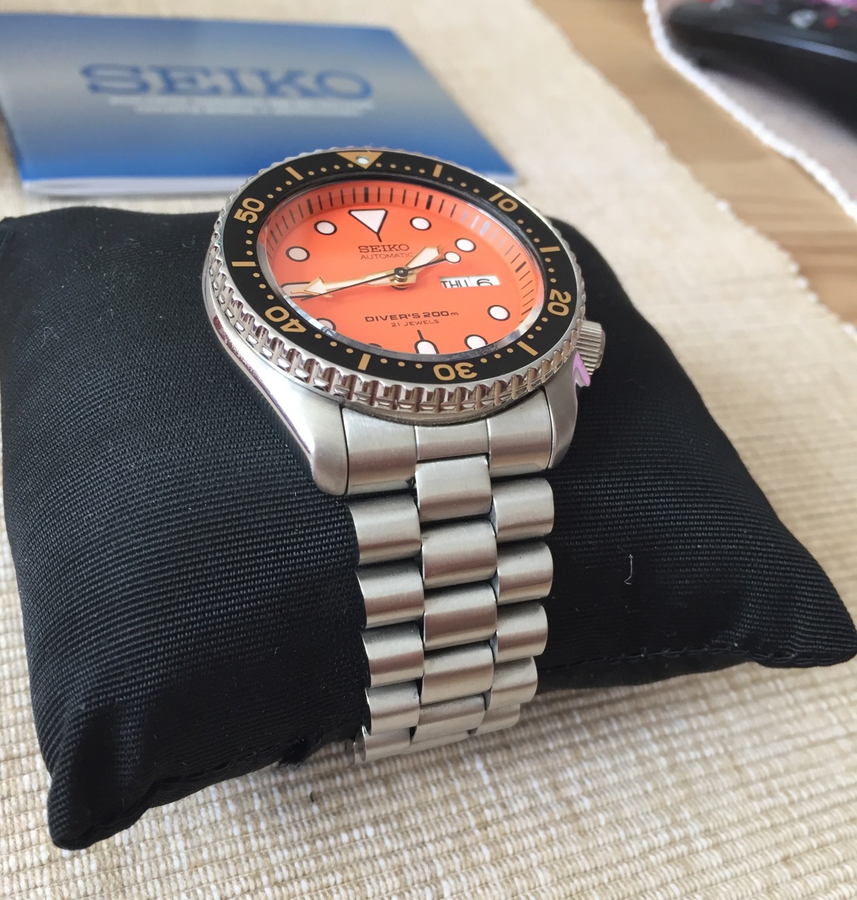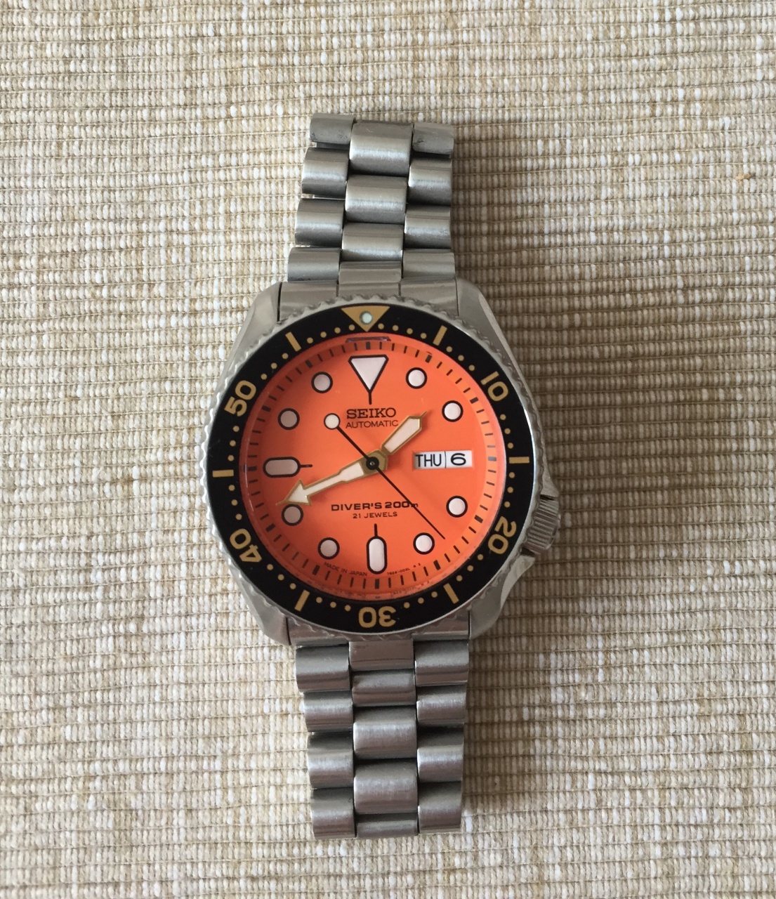 | orange, seiko, skx011j |