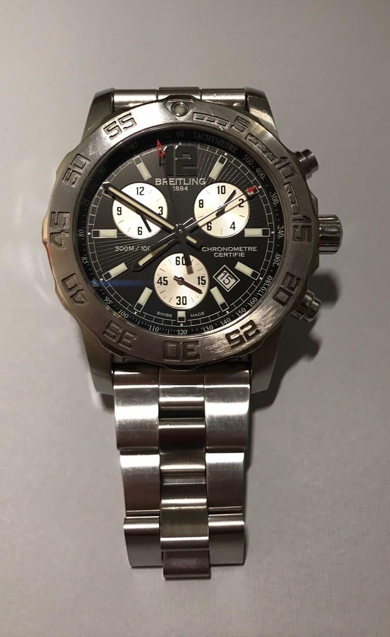 Продам или поменяю, но с моей доплатой!!! На мой взгляд самый красивый Breitling Colt Cronographe II, в отличном состоянии и в полном комплекте. Часы на браслете, дополнительным бонусом, оригинальный каучук с баклей, в состоянии новой. 44 мм. но при этом смотрятся не громостко и аккуратно. Ход абсолютно точный (+1 сек, за 15 дней)! На обмен интересны Rolex все от 4 0мм., Ulysse от 43 мм, IWC, не классика и PAM на автомате, все, разумеется, с моей доплатой.
