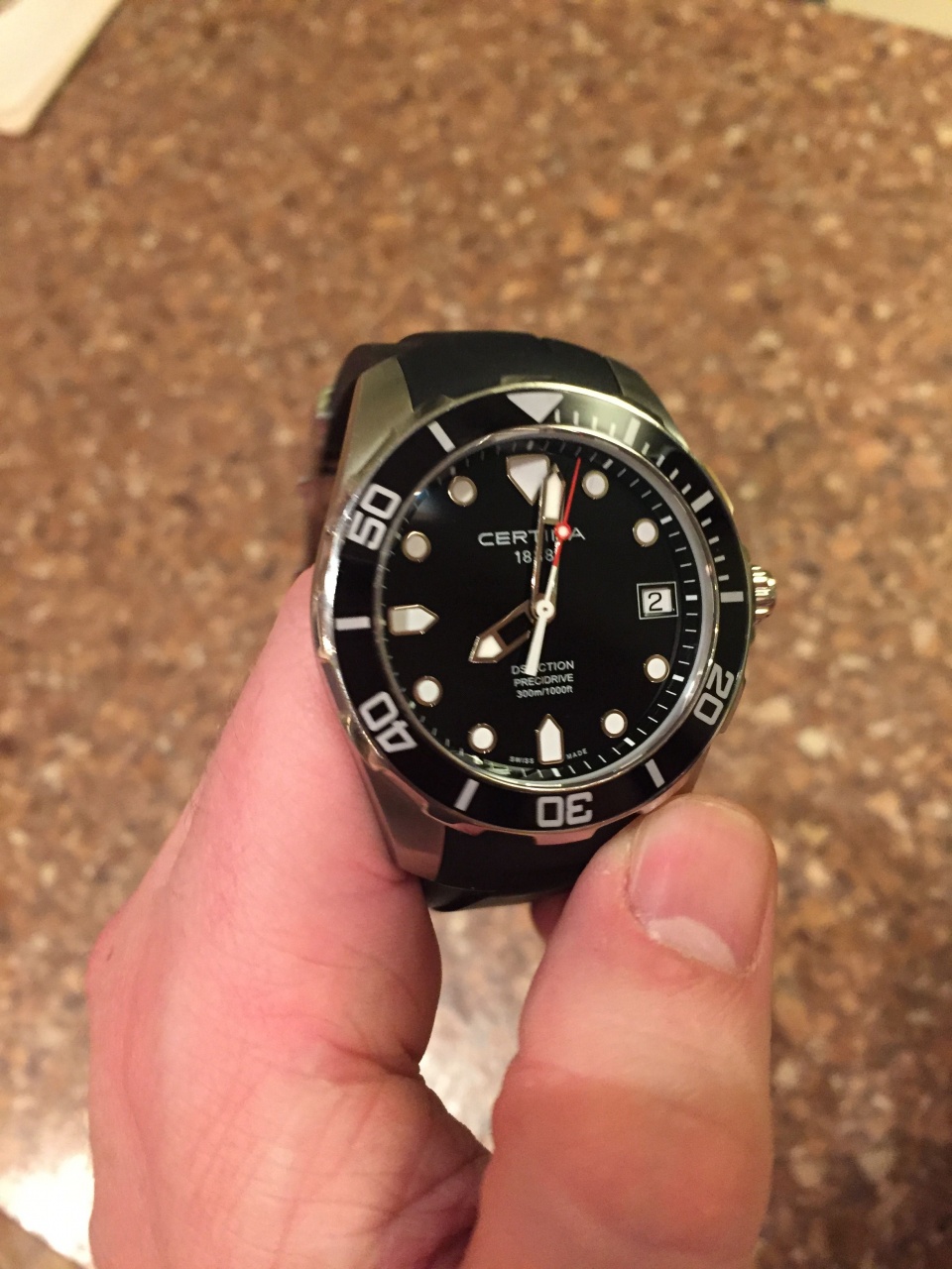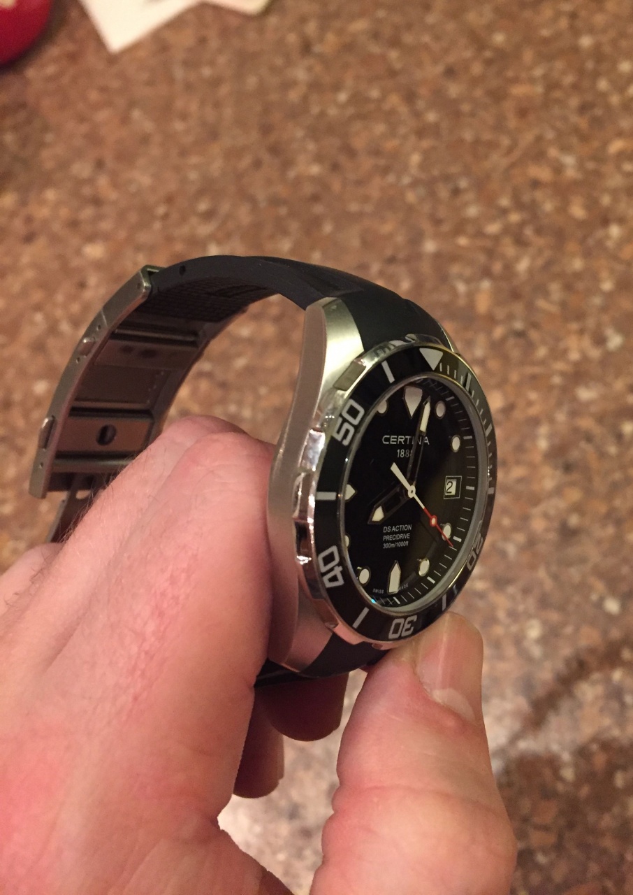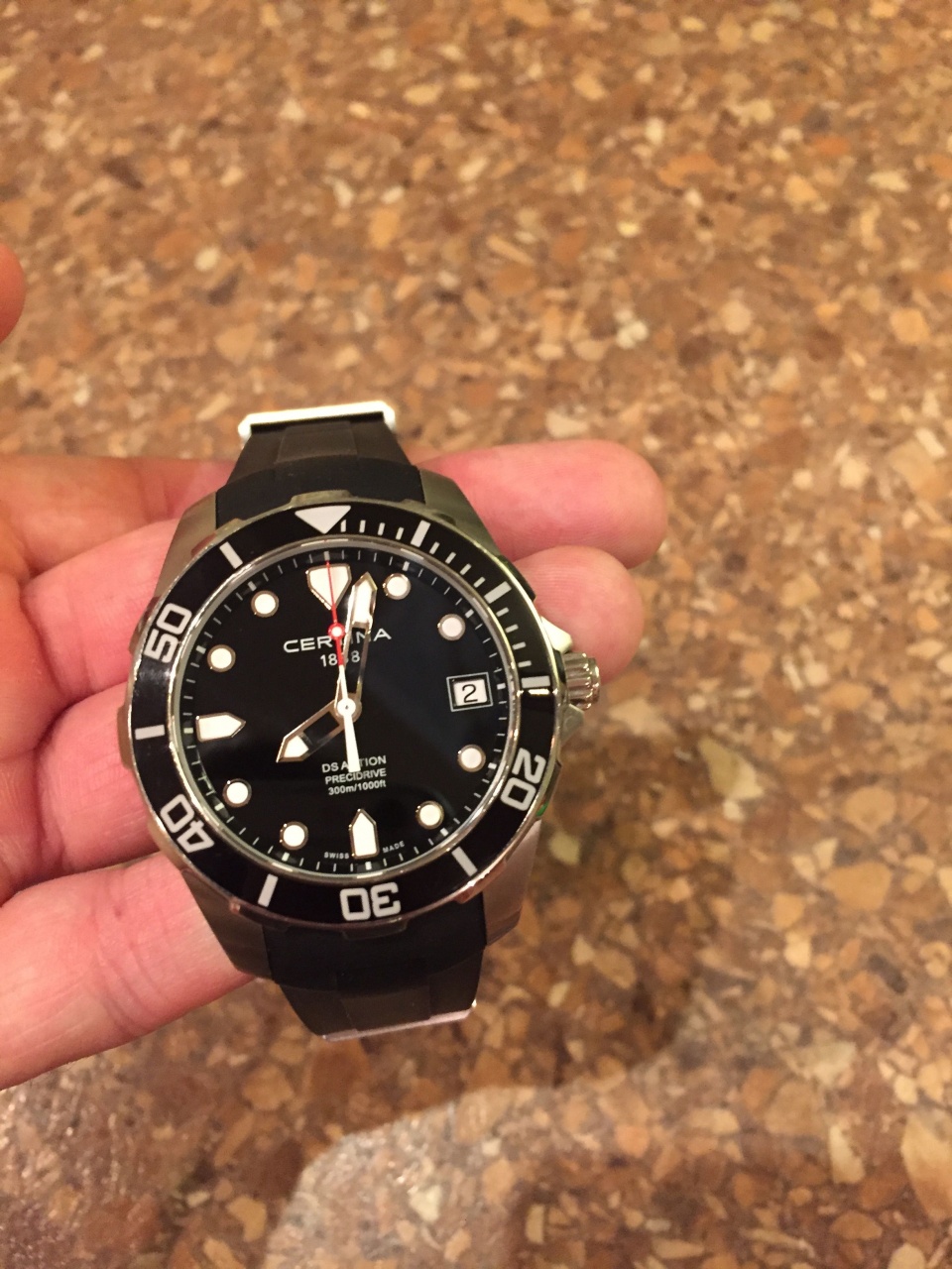 Certina DS Action Precidrive. Отличный швейцарский черный дайвер на сверхточном кварцевом механизме Precidrive на каучуке.