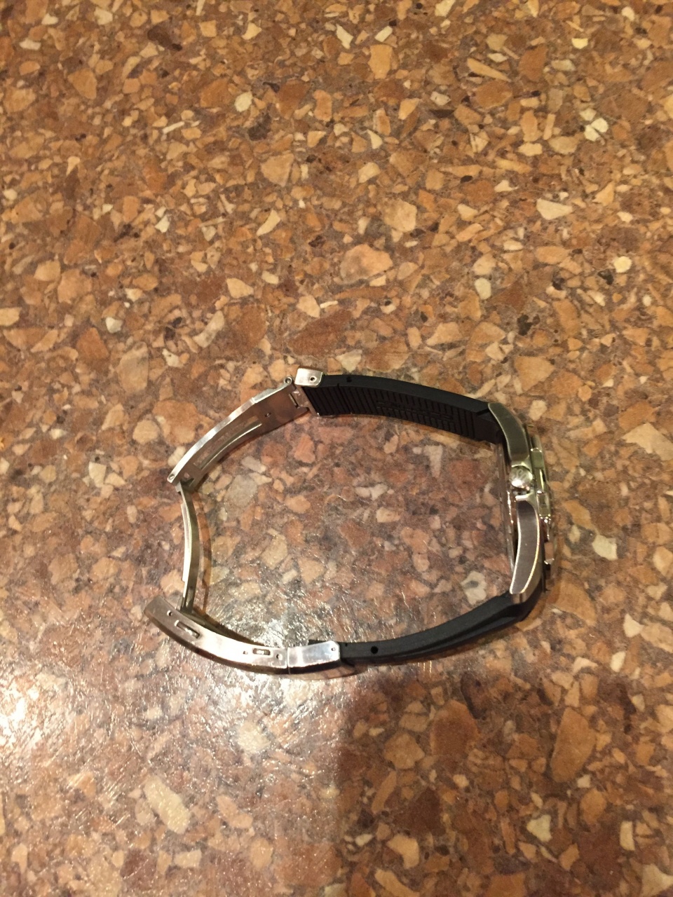 Из минусов: небольшая царапина на безеле в районе 50(практически не видно, доп фото пришлю по запросу), оригинальный каучук обрезан под запястье 17,5 см.