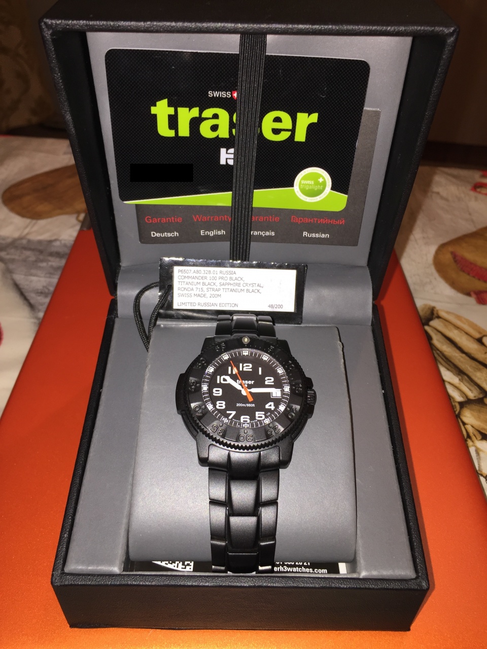 Продам лимитированную версию знаменитых Traser P6507, а именно RUSSIA COMMANDER 100 PRO BLACK. Данный экземпляр имеет № 48 из выпущенных в серию 200 штук.