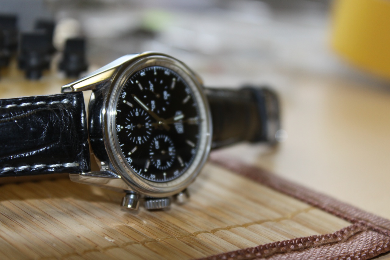Произведена полная полировка часов( корпус,головка,кнопки,крышка,застежка) установлен новый ремень из кожи крокодила ручной работы