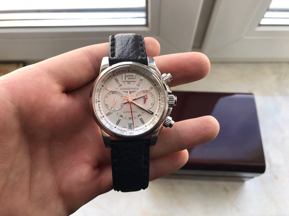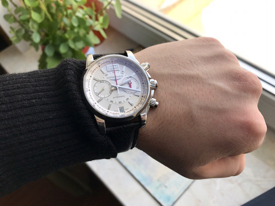 Являясь в прошлом (и настоящем) владельцем большого числа разных часов бренда Longines, с уверенностью готов заявить, что данная модель, по моему скромному мнению, является самой успешной и эффектной. Идеальное сочетание изящества и красоты с силой и мощью. Гильоше на циферблате выглядит шикарно, тахиметрическая шкала добавляет легкую нотку спорта. Сочетание цветов (красный, черный, белый) идеально, и делает дизайн самодостаточным. Отмечу, что часы идеальны для повседневного использования и на разные случаи жизни, т.к. имеют довольно универсальный дизайн, что позволяет носить их как с костюмом, так и с джинсами.