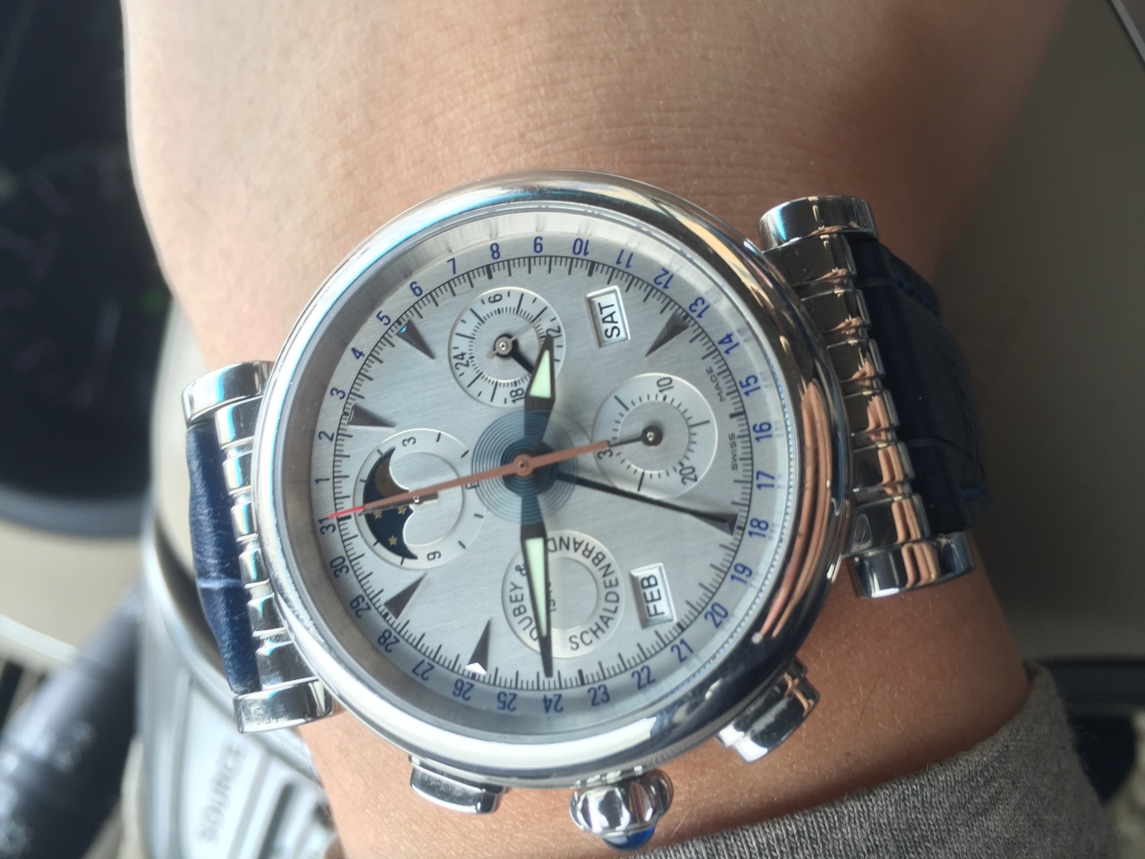 DUBEY & SCHALDENBRAND: Spiral VIP. Часы очень красивые. Только что после полного обслуживания в Секунде. На руках родная коробка и документы. Сейчас на синем ремешке. Есть старый оригинальный ремешок из кожи ската коричневого цвета, но он требует ремонта внутренней стороны. Внешняя сторона в абсолютно нормальном состоянии.