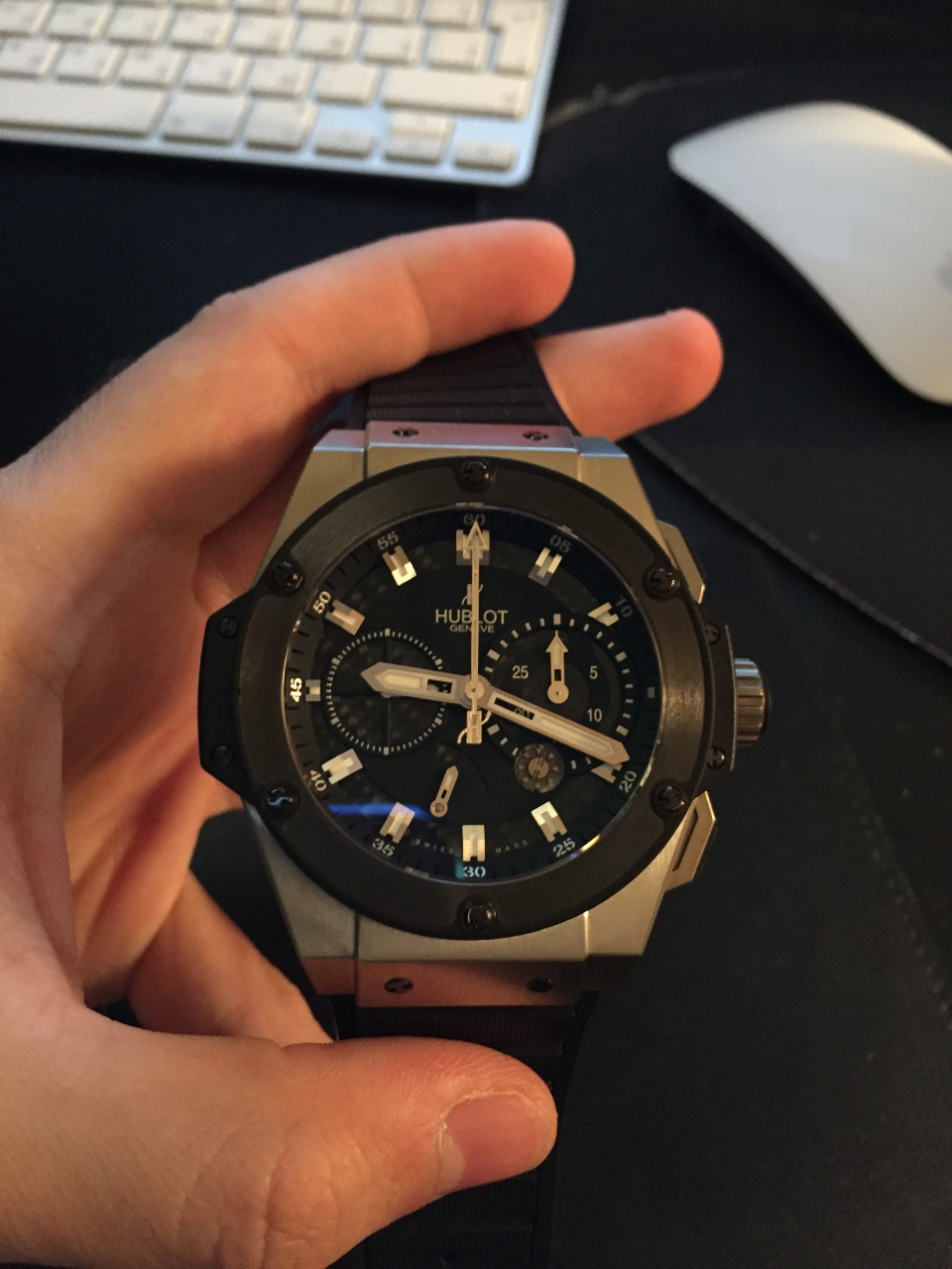 Дорогие друзья, продаю неспешно одни из своих любимых Hublot. Легендарные King Power не только с хронографом, но еще с двойной стрелкой (Split Second или Rattrapante) и с указателем запаса хода! Просто шикарные часы в идеальном состояние (как видите на фотках).