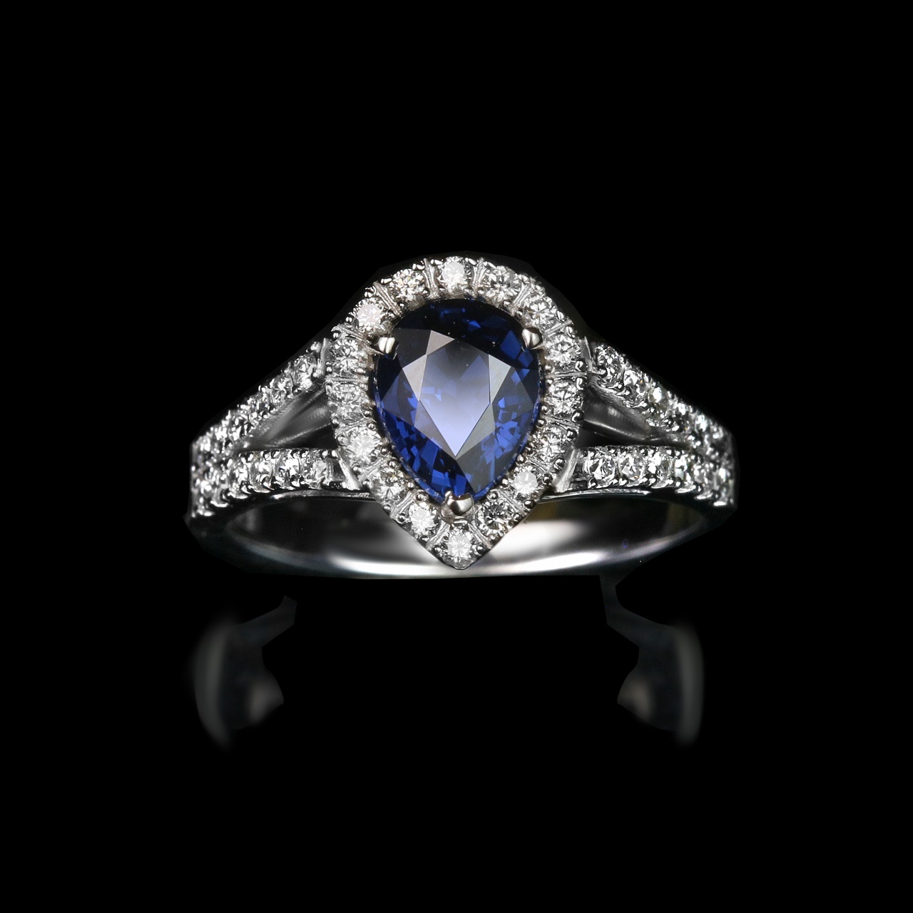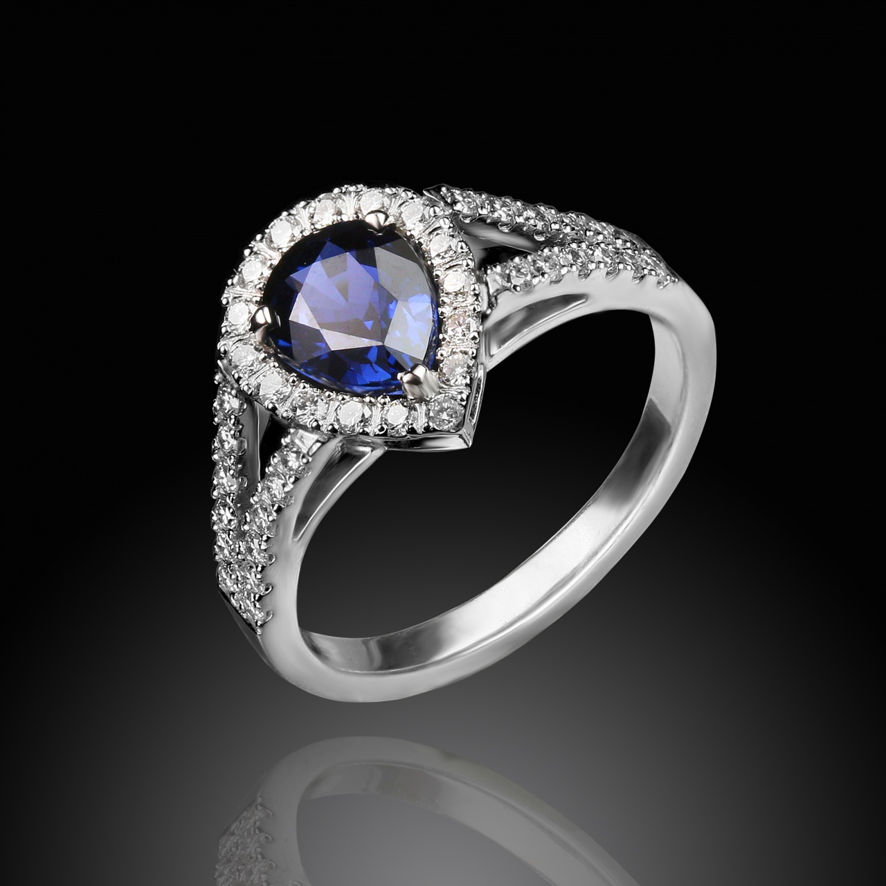 Кольцо из белого золота с сапфиром 1,46 карат и бриллиантом 0,4 карат